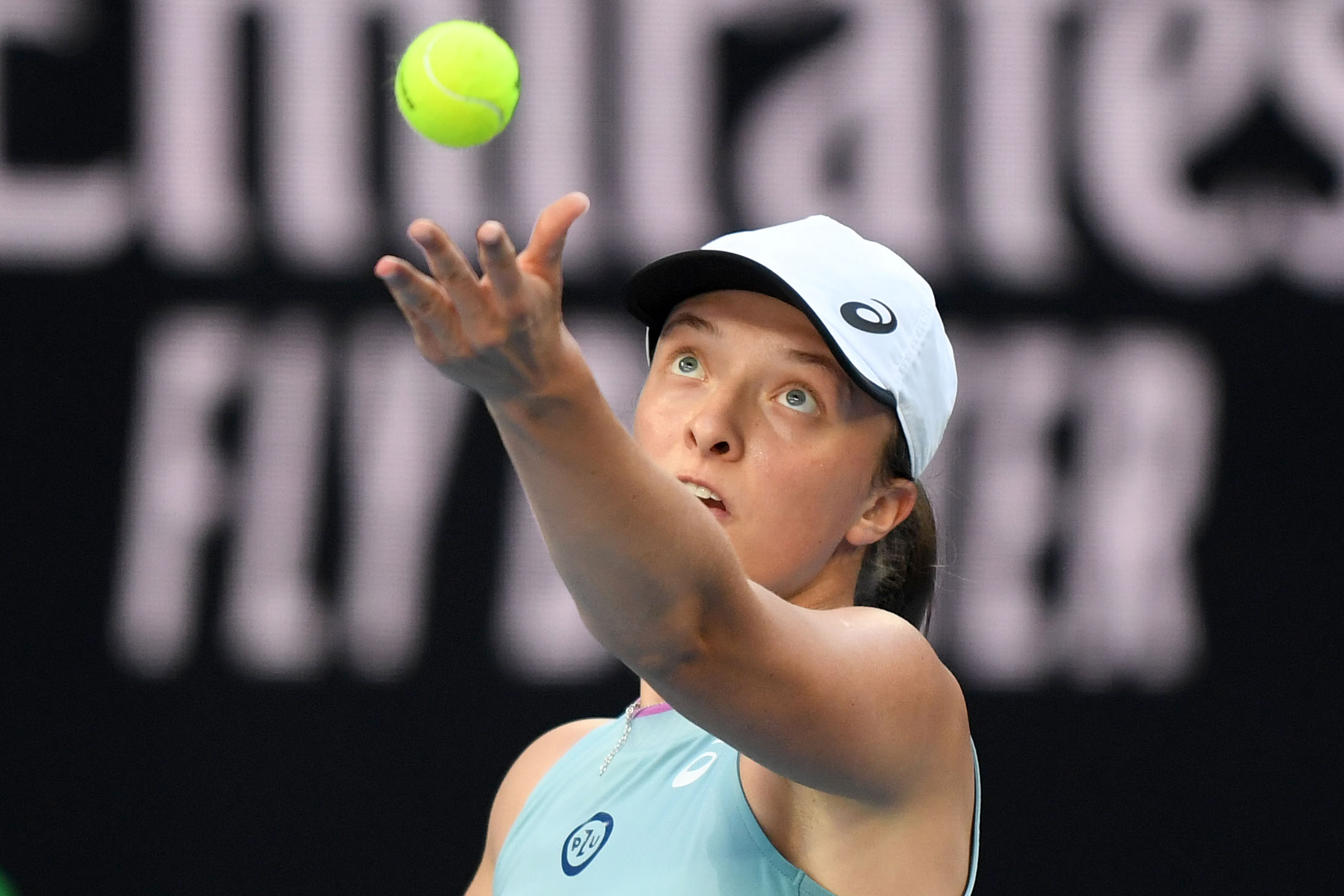 Iga SWIATEK (POL) plays Camila GIORGI (ITA) on John Cain Arena during Day 3 of the Australian Open at Melbourne Park on Wednesday, February 10, 2021. MANDATORY PHOTO CREDIT Tennis Australia/ MORGAN HANCOCK