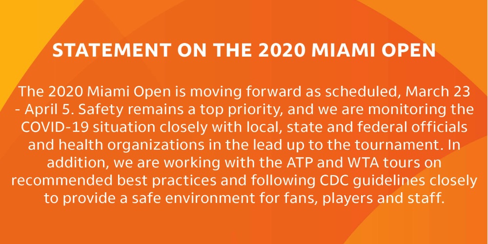 But organisers of the Miami Open have confirmed that the 2020 tournament “is moving forward as scheduled”.