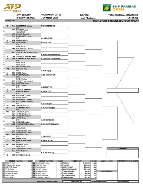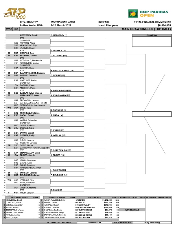 Indian Wells Men’s Draw