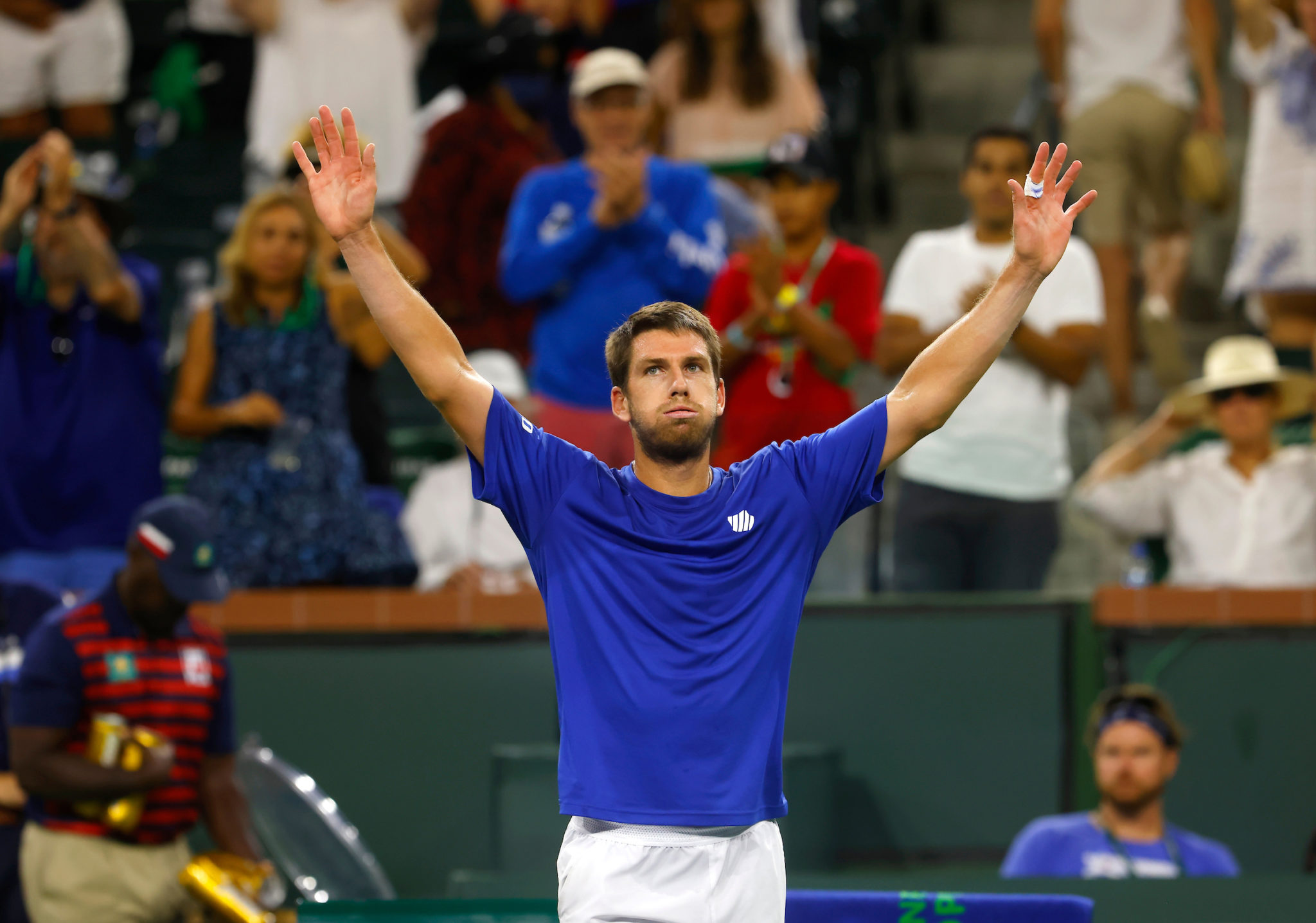 Sunday, October 17, 2021 - Cameron Norrie reacts after defeating Nikoloz Basilashvili in the men's final match at Stadium 1 on day 14 of the 2021 BNP Paribas Open at Indian Wells Tennis Garden in Indian Wells, CA. (Jared Wickerham/BNP Paribas Open)