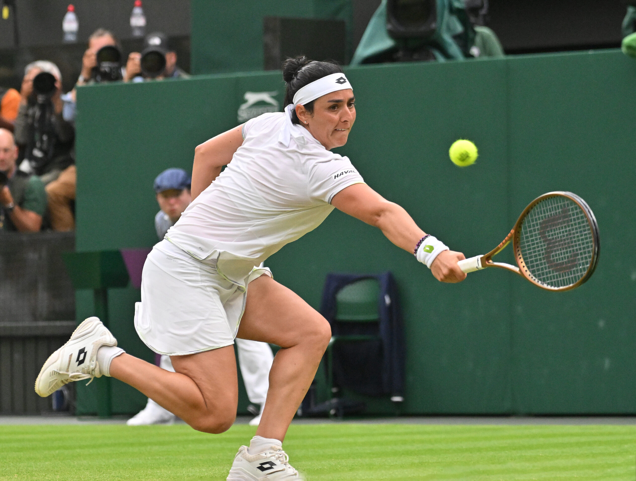 London Wimbledon Championships Day 11 1/07/2023 Ons Jabeur (TUN) wins semi final match Photo Roger Parker International Sports Fotos Ltd