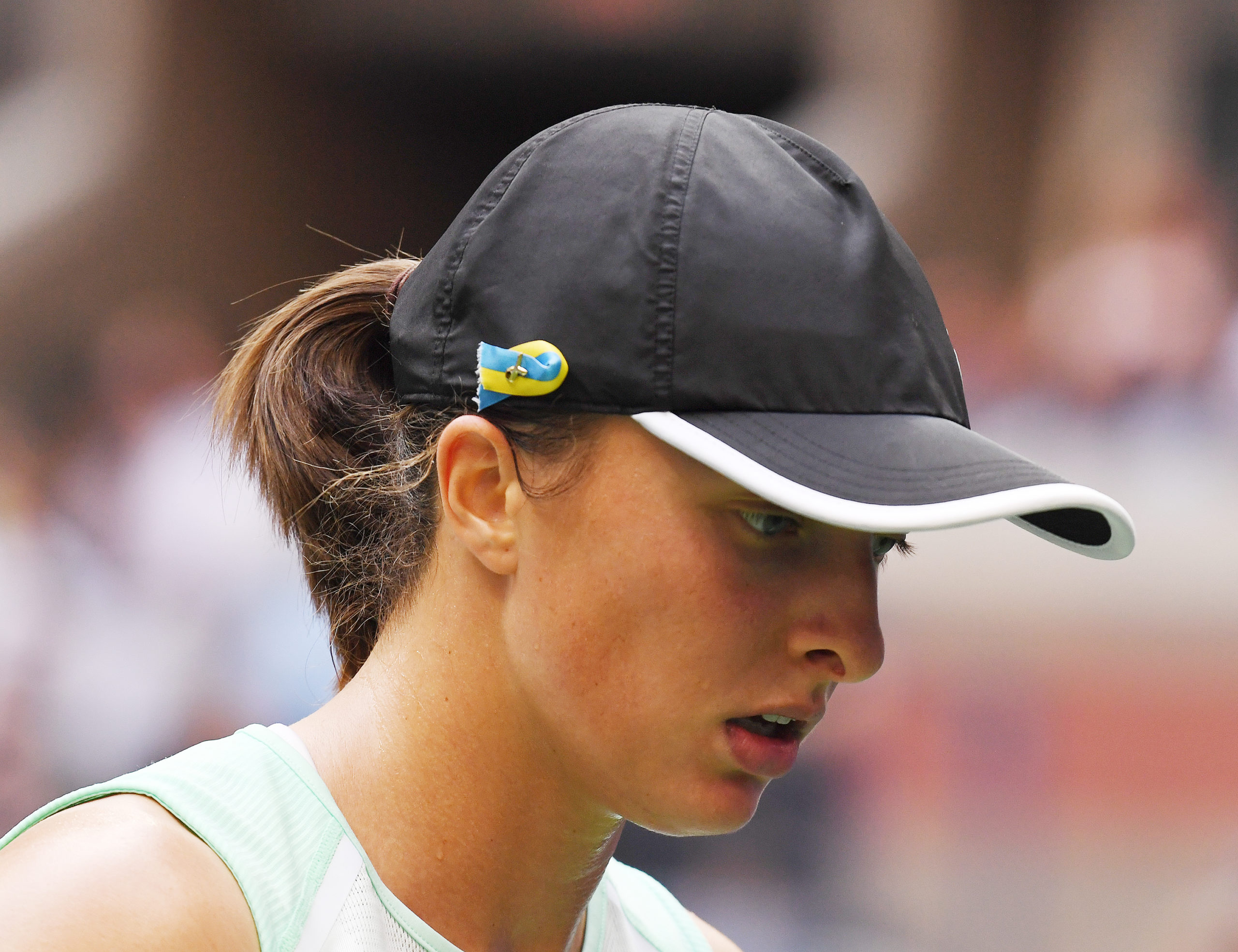 New York Flushing Meadows US Open Day 13 10/09/2022 Iga Swiatek (POL) wearing a badge Supporting Ukraine on her capas she wins ladies singles final Photo Roger Parker International Sports Fotos Ltd