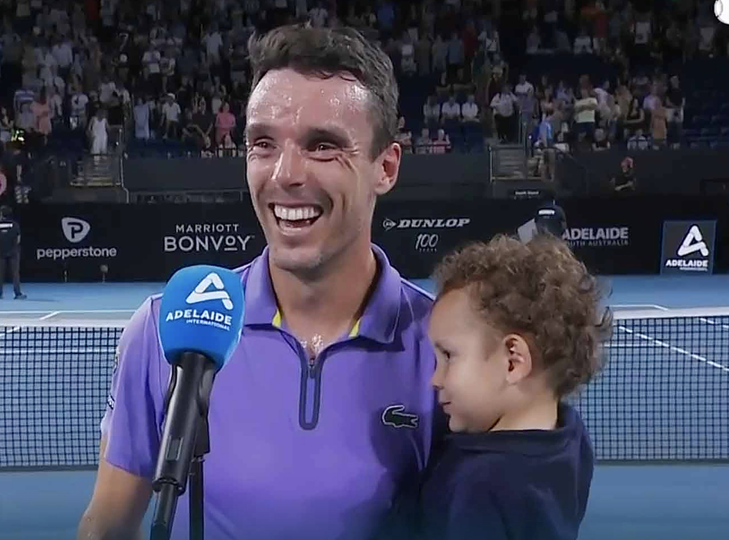 Main photo:- Roberto Bautista Agut and son steal the show after Adelaide 2 win – by ATPTour.com