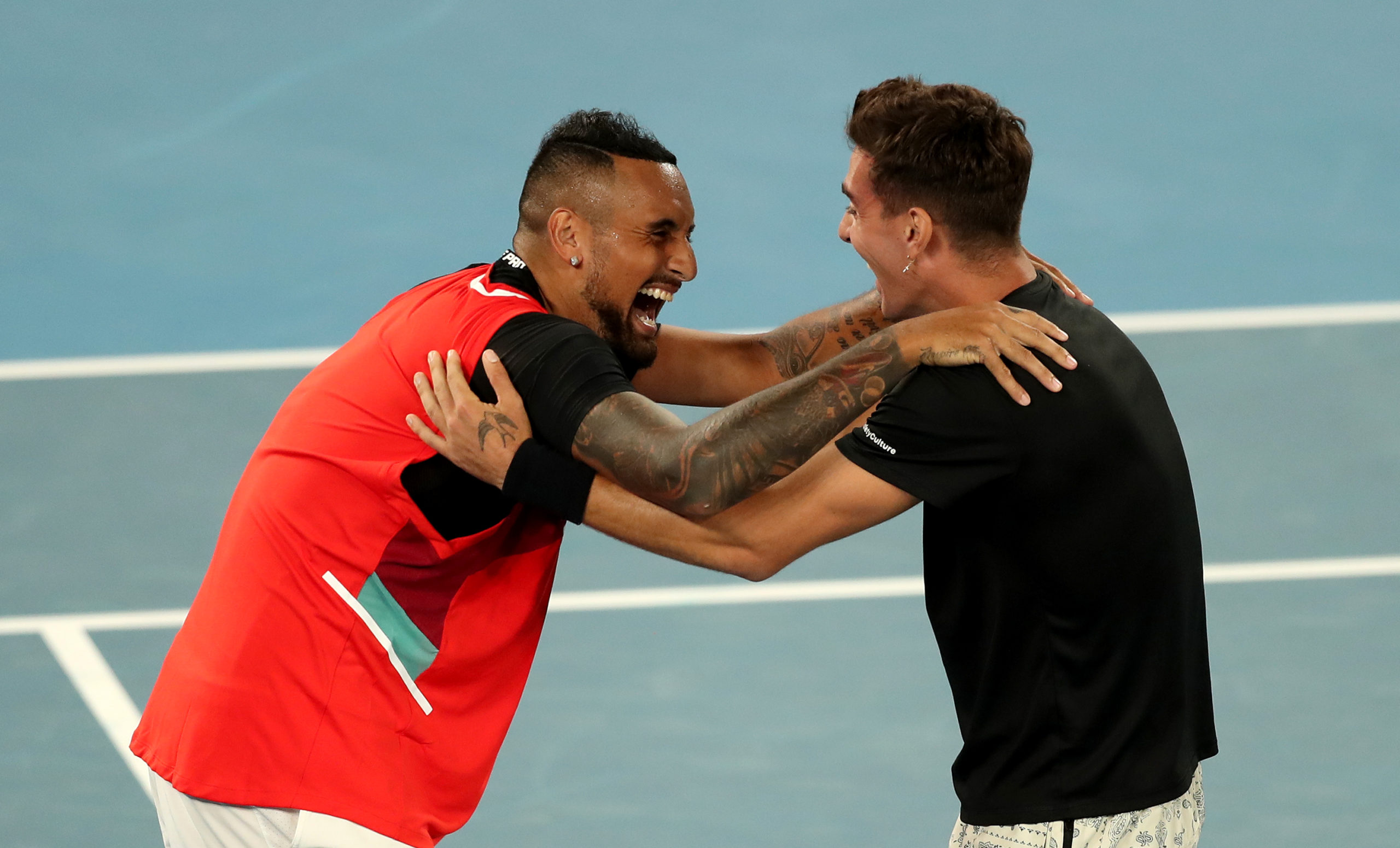 Main photo:-Nick Kyrgios and Thanasi Kokkinakis celebrate winning Men’s doubles final Australian Open 2022 by Karl Winter International Sports Fotos Ltd