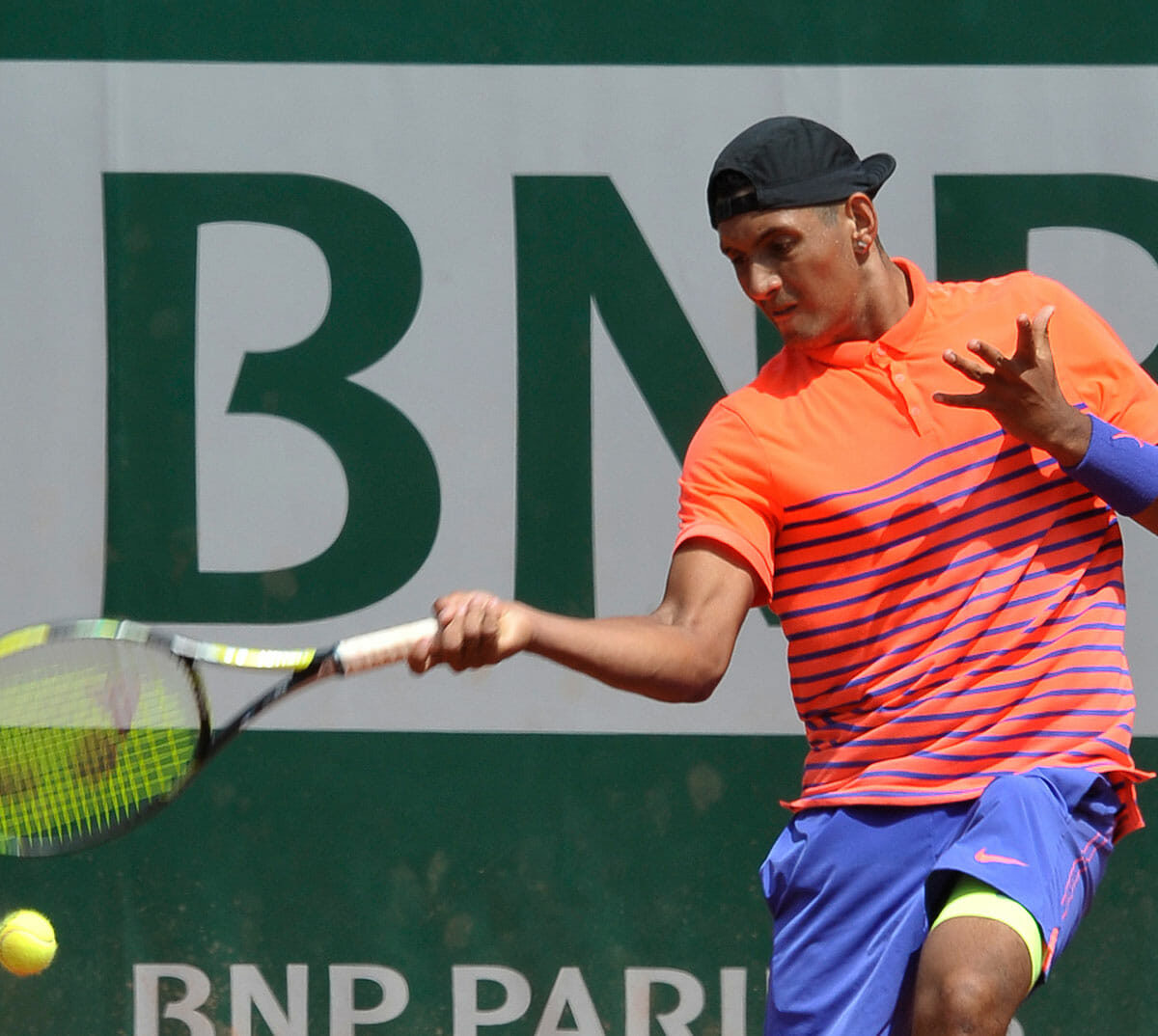 Australia’s Nick Kyrgios may have missed out at Roland Garros but he is back on court preparing for Wimbledon.