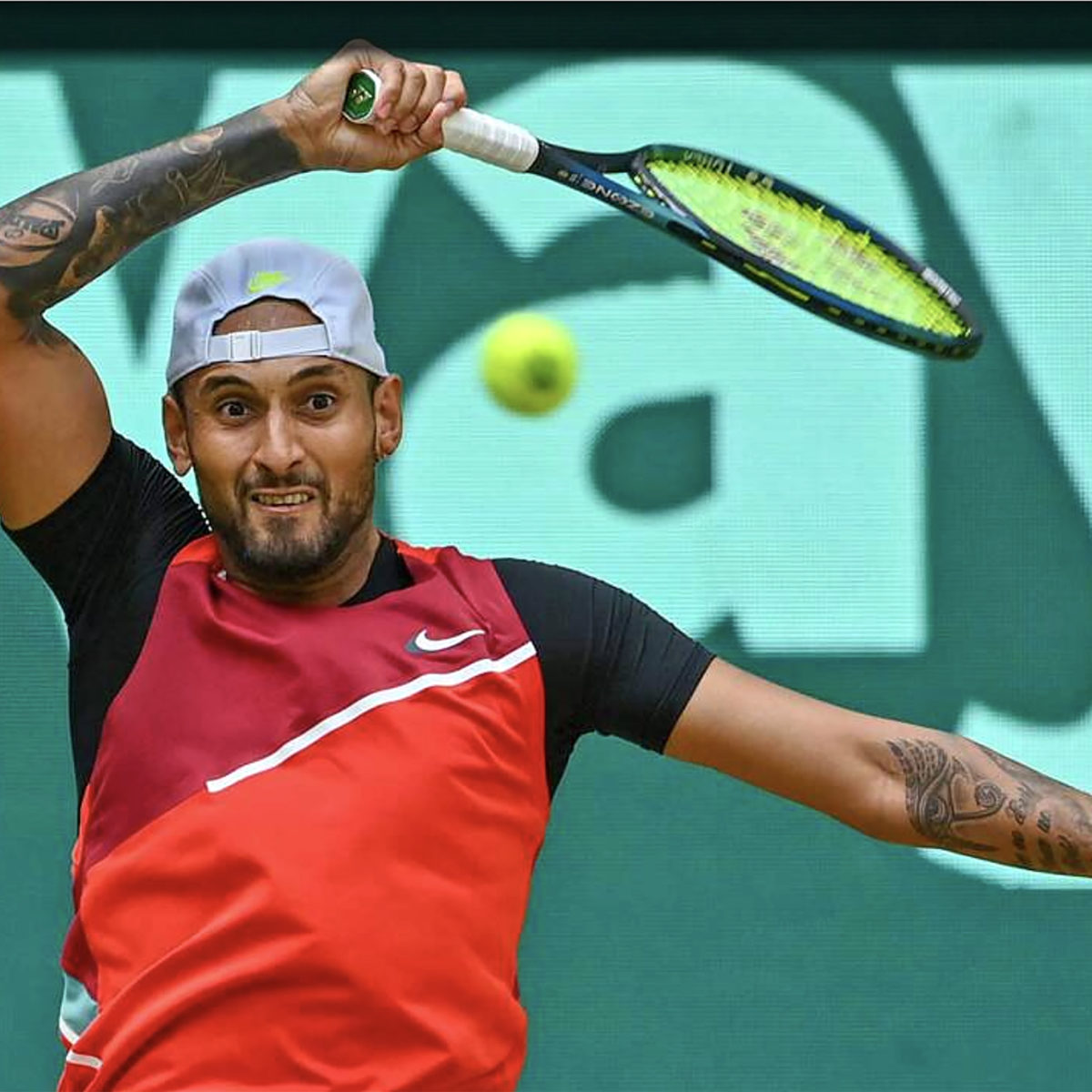 Main photo:- Nick Kyrgios winning in Halle today – by ATPTour.com