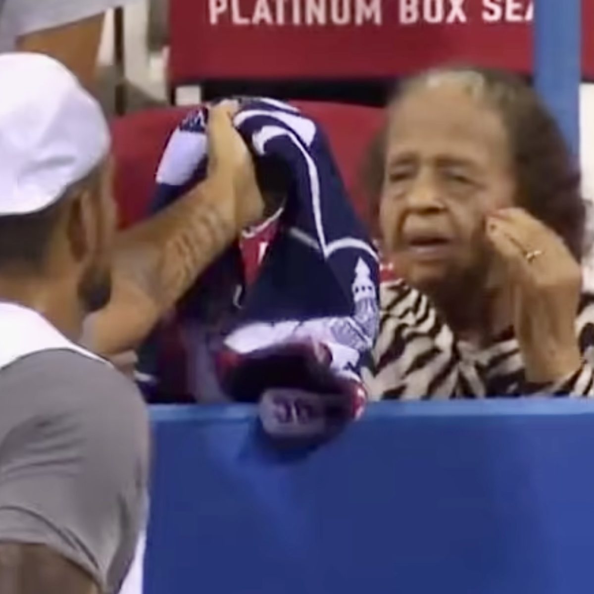 Paul went over to check on the fan and Kyrgios then gave her one of his towels as a souvenir, but the elderly woman, who had recovered, turned to a spectator next to her and asked: “What is this for?”