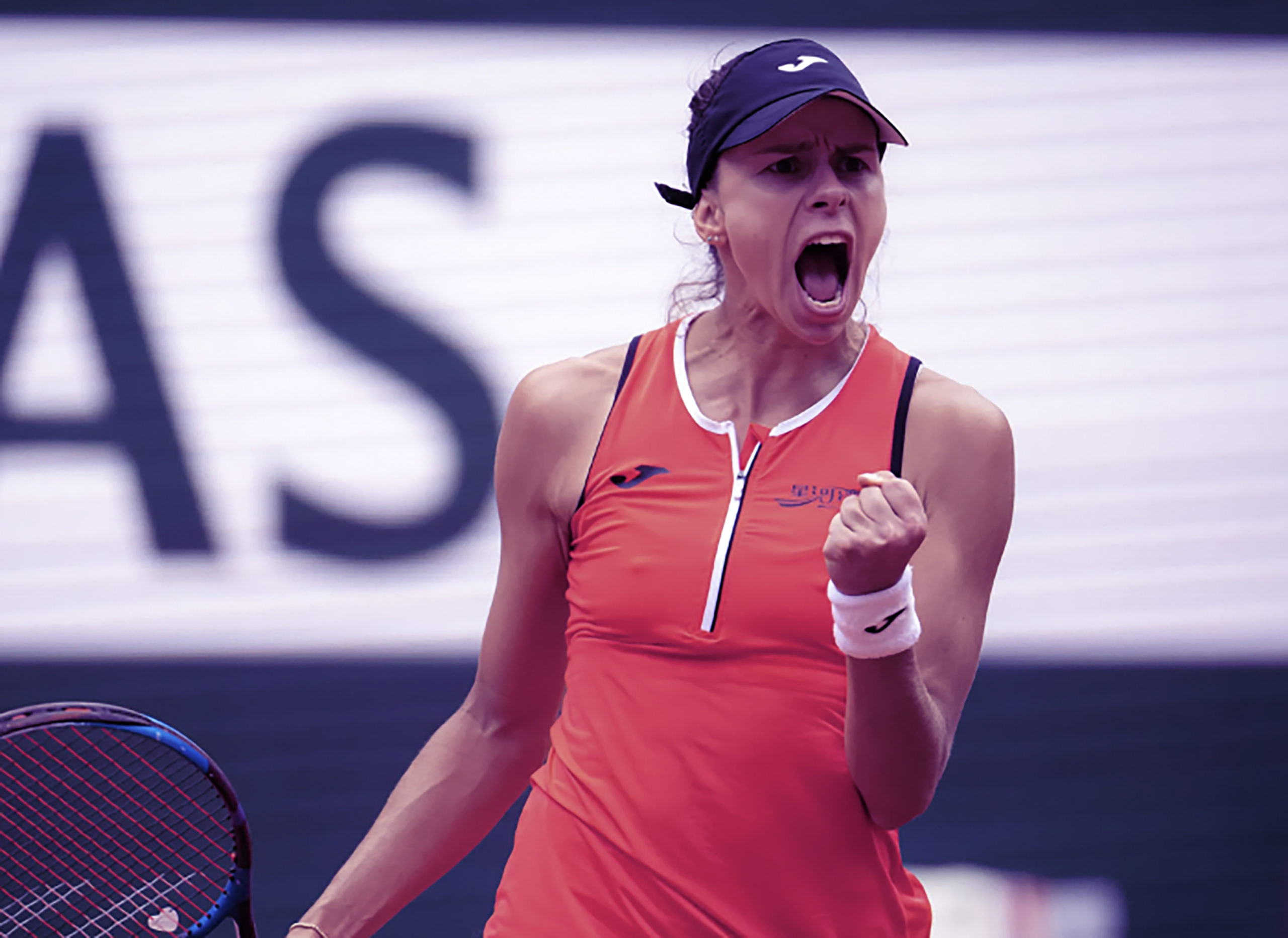 Main photo:- Magda Linette celebrates first round win – by WTATennis.com