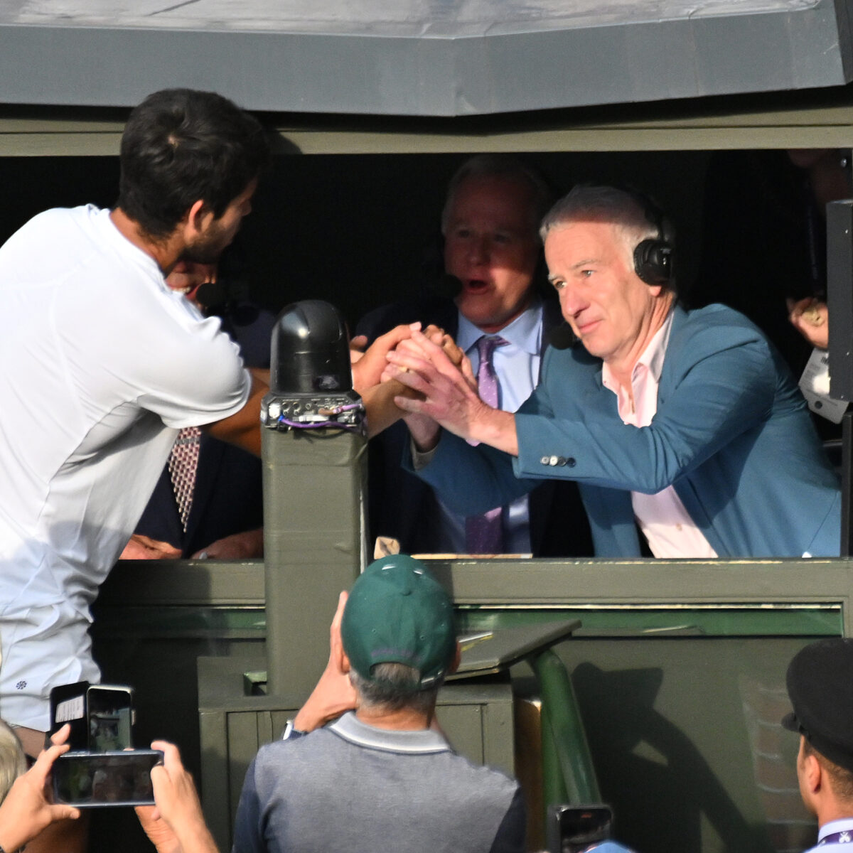 Main photo:- Wimbledon Championships Day 14 15/07/2023 Carlos Alcaraz is congratulated by John McEnroe in the commentary booth after he wins Men’s Singles Final by Roger Parker International Sports Fotos Ltd