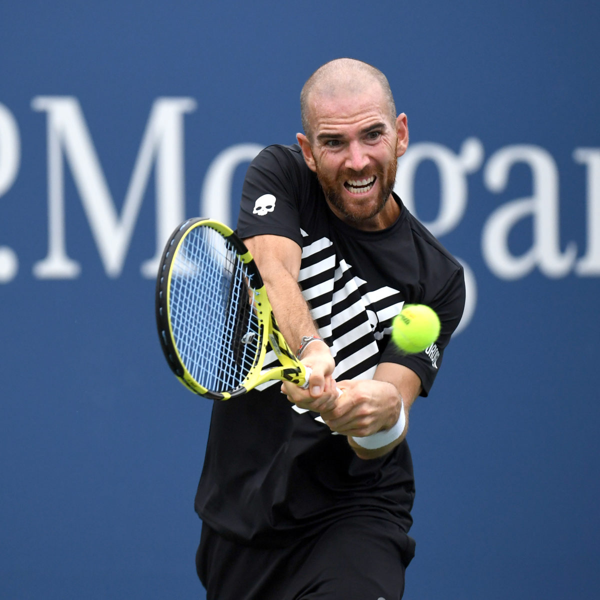 Main photo:-Adrian Mannarino in action – by Rhea Nall/USTA)