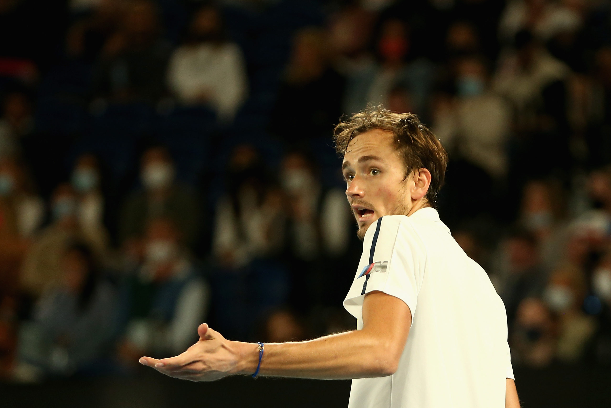 Daniil MEDVEDEV (RUS) plays Novak DJOKOVIC (SRB) during the Mens Final on Rod Laver Arena on Day 14 of the Australian Open at Melbourne Park on Sunday, February 21, 2021. MANDATORY PHOTO CREDIT Tennis Australia/ ROB PREZIOSO
