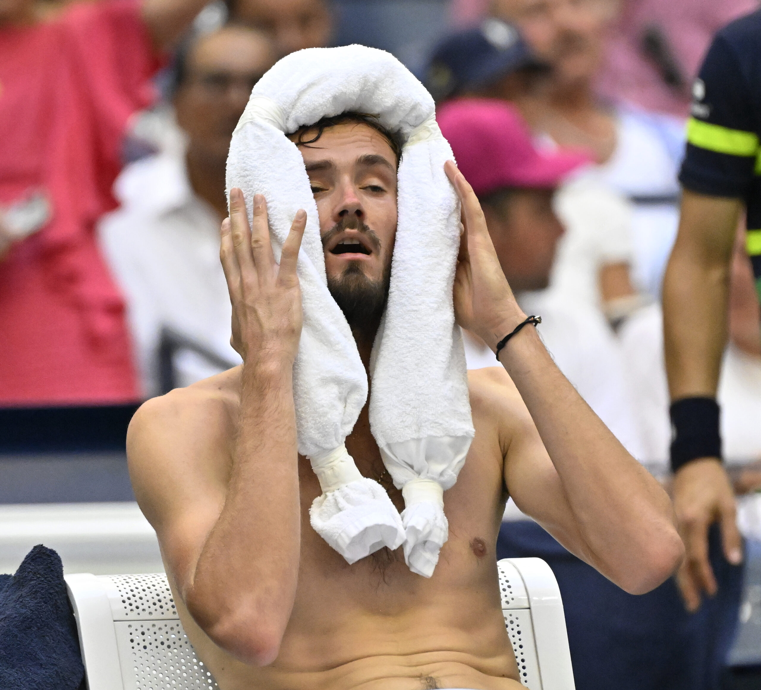 US Open Flushing Meadows New York 06/09/2023 Day 10 Daniil Medvedev (xxx) cools down after he wins quarter final match Photo Roger Parker International Sports Fotos Ltd