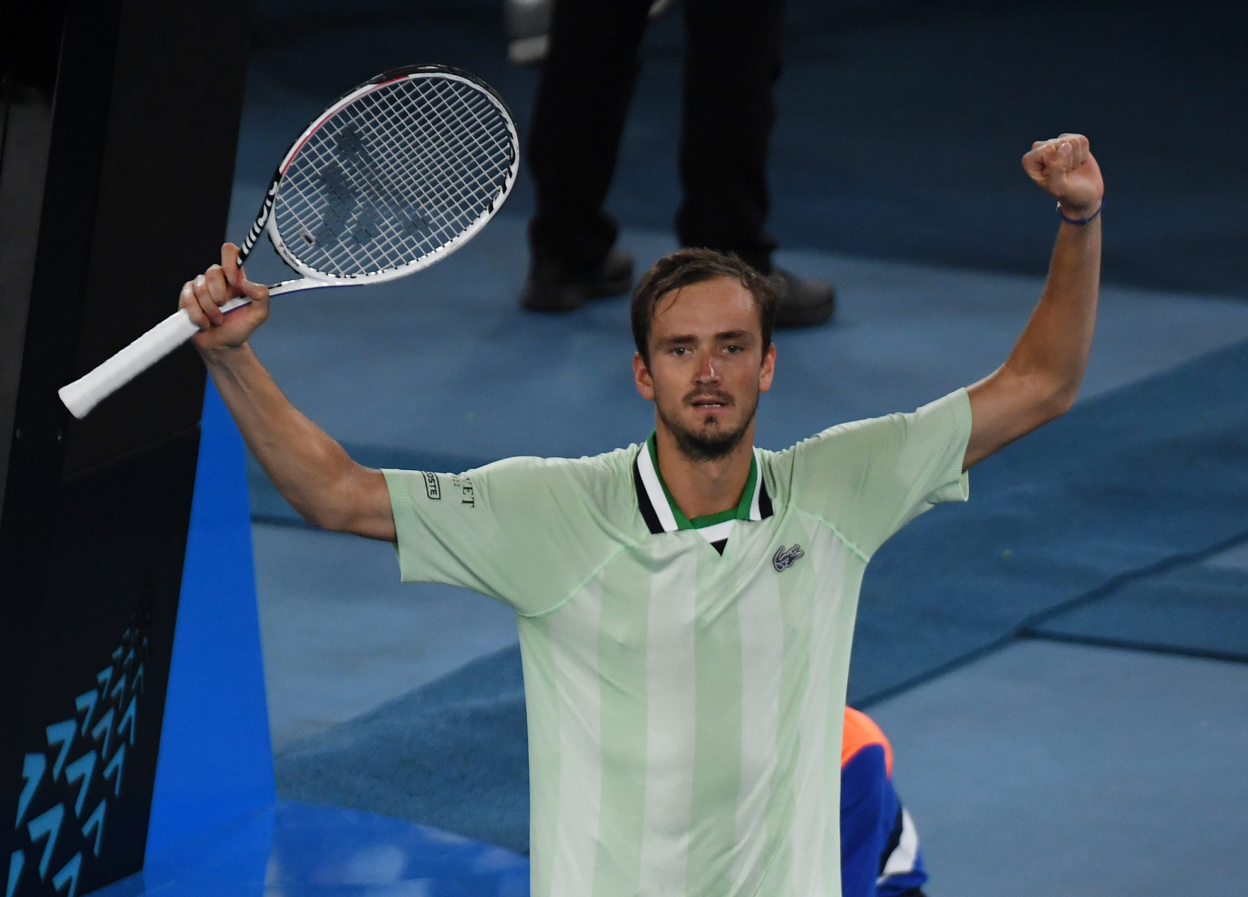 Australian Open Melbourne Park Day 12 28/01/2022 Daniil Medvedev (RUS) celebrates as he wins Men’s Semi-Final Photo Roger Parker International Sports Fotos Ltd