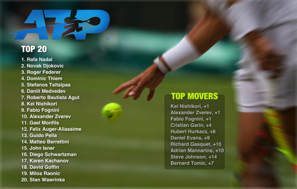 Other climbers include Roberto Bautista Agut, up two spots. The Spaniard, who reached his first Grand Slam championship semi-final at Wimbledon last month, is also up to a career-high No. 11 after he advanced to the fourth ATP Masters 1000 quarter-final of his career. Bautista Agut was at No. 25 on 18 March this year.