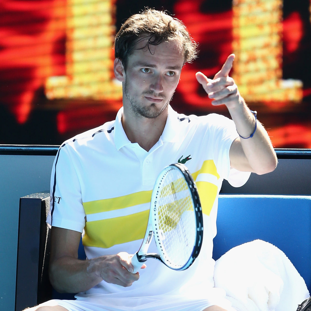 A furious Daniil Medvedev blew up at his coach in Melbourne today, on his way to a 6-3, 6-3, 4-6, 3-6, 6-0 win over 28th seed Filip Krajinovic.