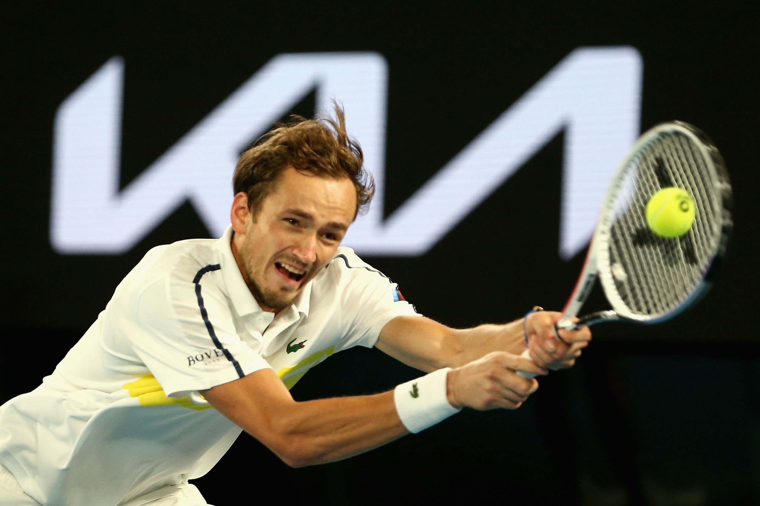 Daniil MEDVEDEV (RUS) plays Novak DJOKOVIC (SRB) during the Mens Final on Rod Laver Arena on Day 14 of the Australian Open at Melbourne Park on Sunday, February 21, 2021. MANDATORY PHOTO CREDIT Tennis Australia/ ROB PREZIOSO