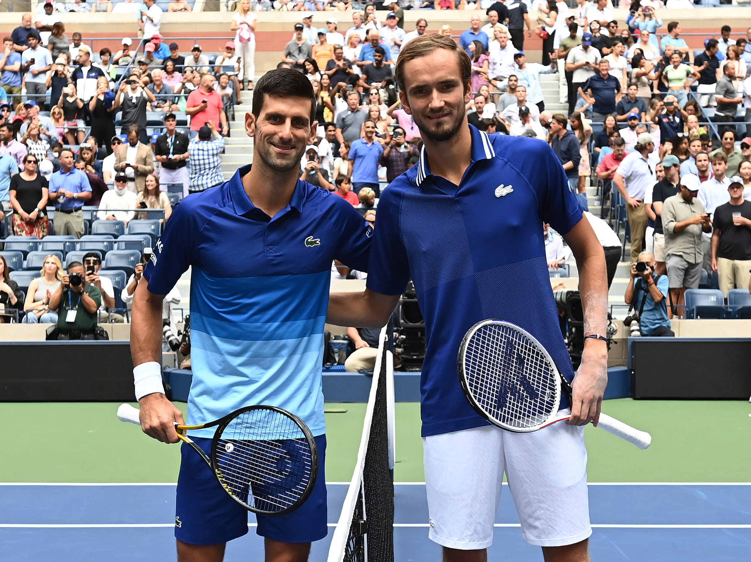 Main photo:- Daniil Medvedev and Novak Djokovic before the Men’s Singles championship match at the 2021 US Open by – Garrett Ellwood/USTA)