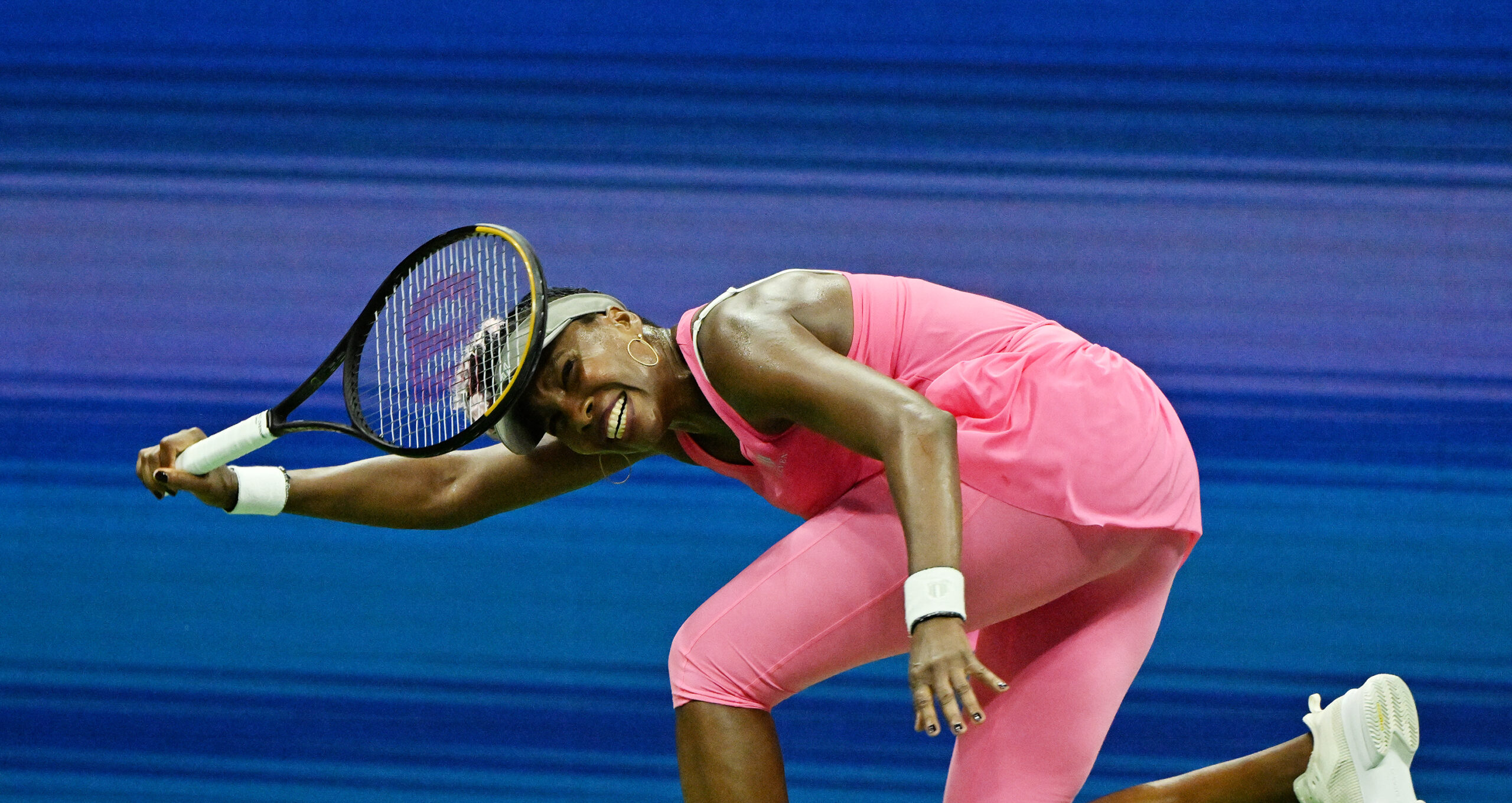 US Open Flushing Meadows 29/08/2023 Day 2 Wildcard Venus Williams (USA) wearing shocking pink “night attire” embarrassingly loses first round match 6-1 6-1 in just one hour 13 minutes to qualifier Greet Minnen (BEL) and “wanders off into the sunset” Photo Roger Parker International Sports fotos Ltd