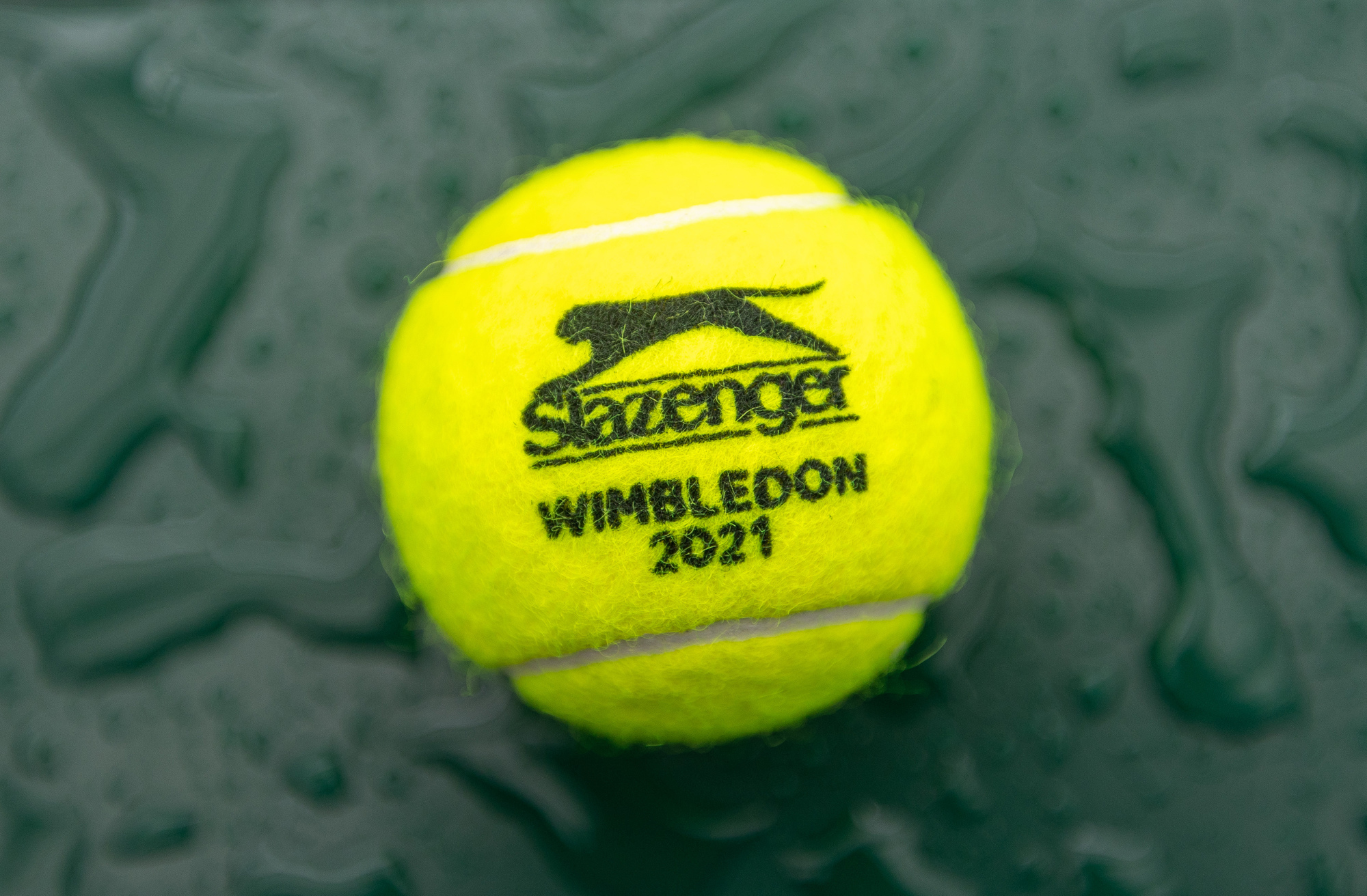 Slazenger tennis ball on the edge of a court during the build-up to The Championships 2021. Held at The All England Lawn Tennis Club, Wimbledon. Day -7 Monday 21/06/2021. Credit: AELTC/David Gray