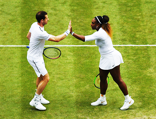 Main photo:- Andy Murray played mixed doubles at Wimbledon with Serena Williams – by Roger Parker International Sports Fotos Ltd