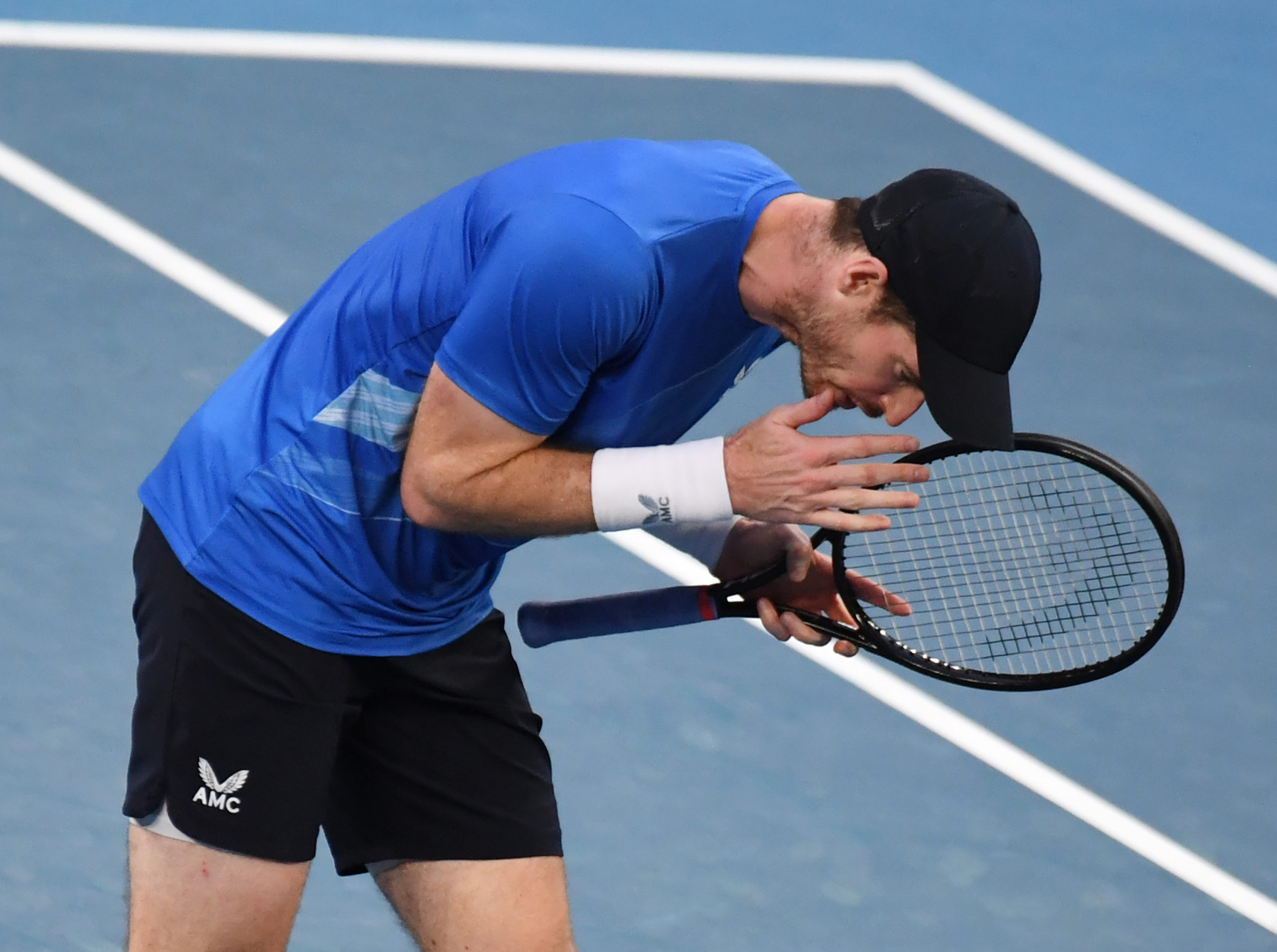 Rod Laver Arena Melbourne Park Day 4 20/01/2022 ANDY MURRAY (GBR) loses second round match and smashes racket Photo Roger Parker International Sports Fotos Ltd