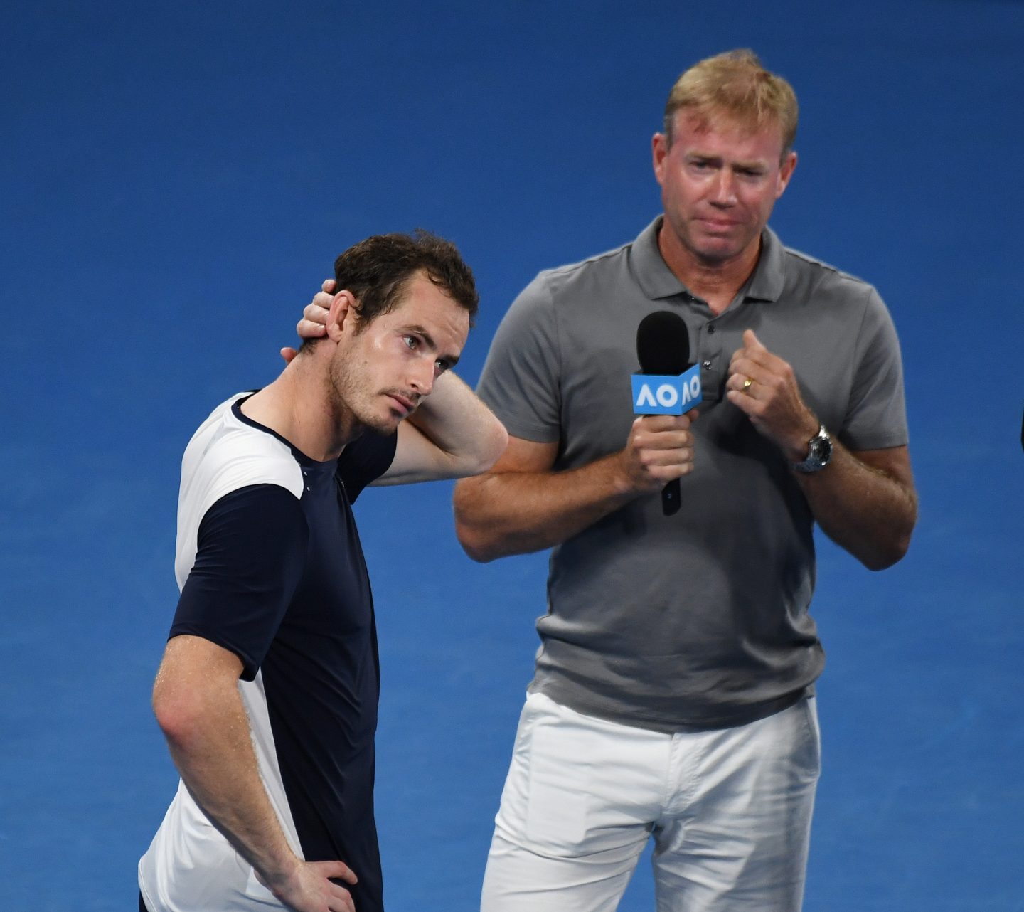 Melbourne Park Australian Open 2019 Day 1 14/01/2019 Braveheart's last stand? Andy Murray (GBR) goes five sets before bowing out on maybe his last Australian Open and Grand slam is interviewed on court by his first coach Mark Petchey Photo Roger Parker International Sports Fotos Ltd https://www.grandslamtennis.online