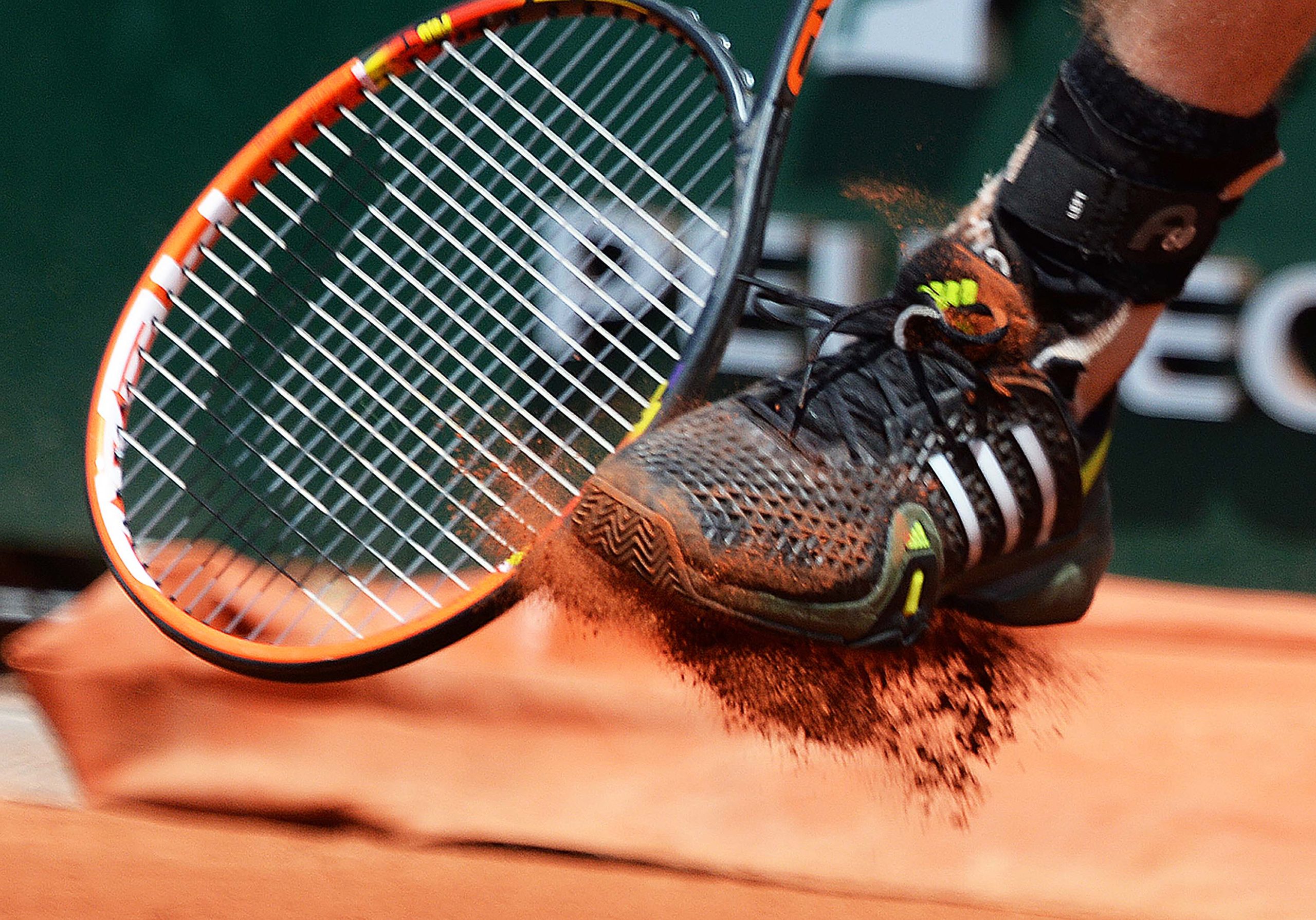 Roland Garros French Open Tennis Paris 30/05/2015 Day 7 Andy Murray wears his new wedding ring on the lace of his right tennis shoe third round match Photo Roger Parker International Sports Fotos Ltd