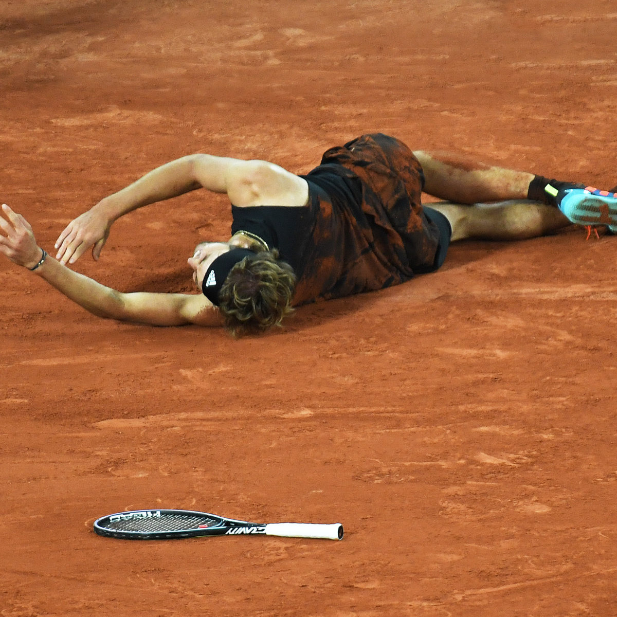 Main photo:- Alexander Zverev writhes in agony after rolling his ankle and was forced to retire – by Roger Parker International Sports Fotos Ltd