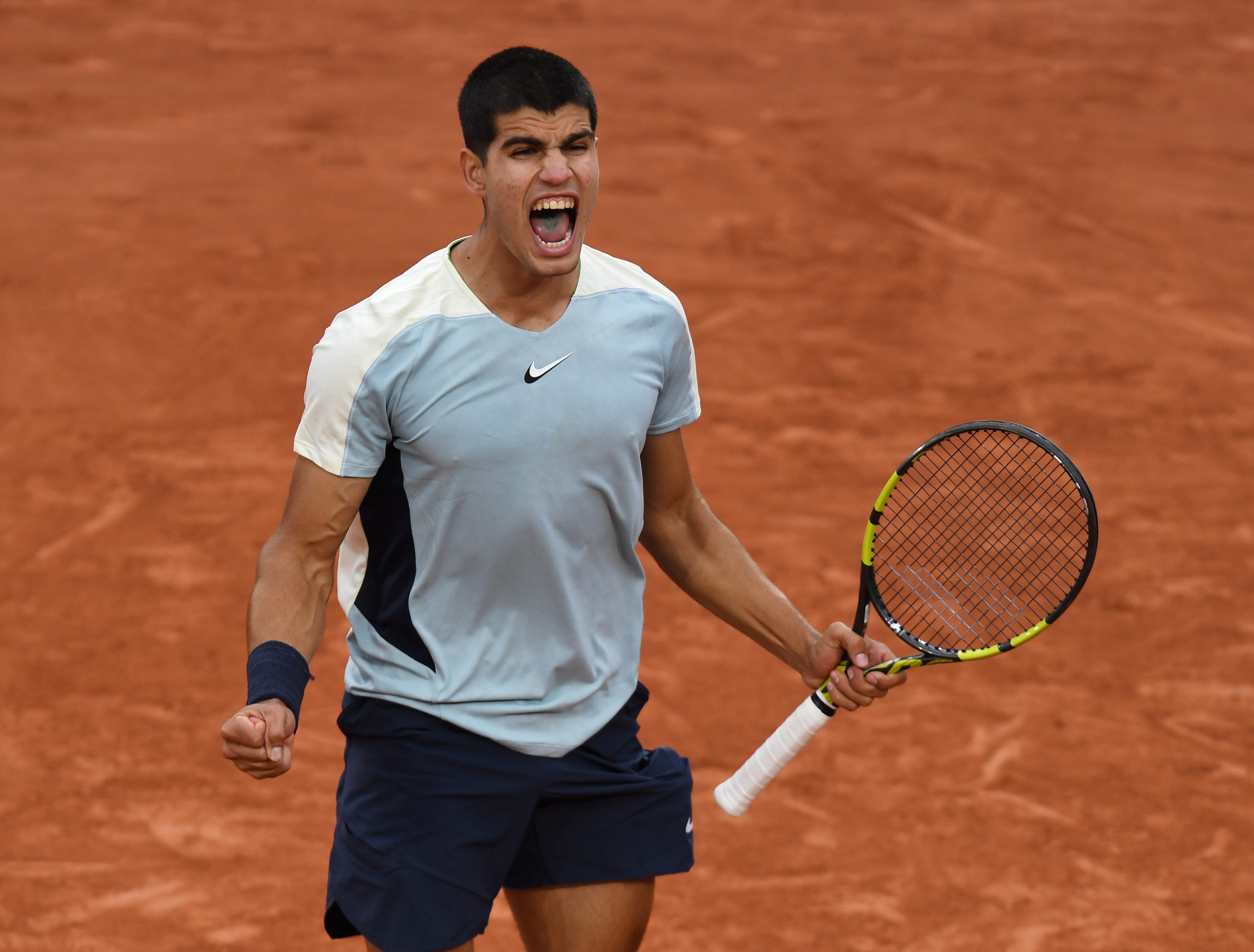 Roland Garros Paris French Open 2022 Day 4 26052022 Carlos Alcaraz celebrates in second round match Photo Roger Parker International Sports Fotos Ltd