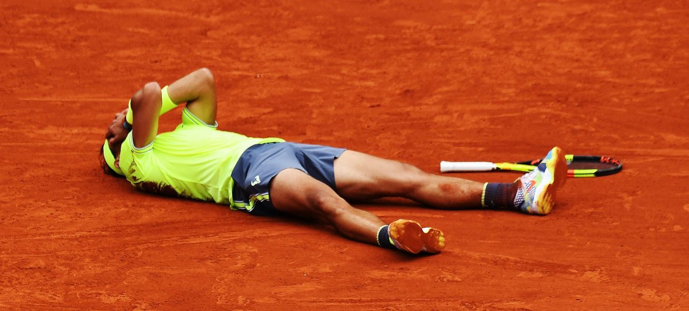 Roland Garros Paris French Open 2019 09/06/19 Day 15 Rafa Nadal (ESP) falls to the ground as he wins a record 12th French Open Singles title Photo Roger Parker International Sports Fotos Ltd https://www.grandslamtennis.online