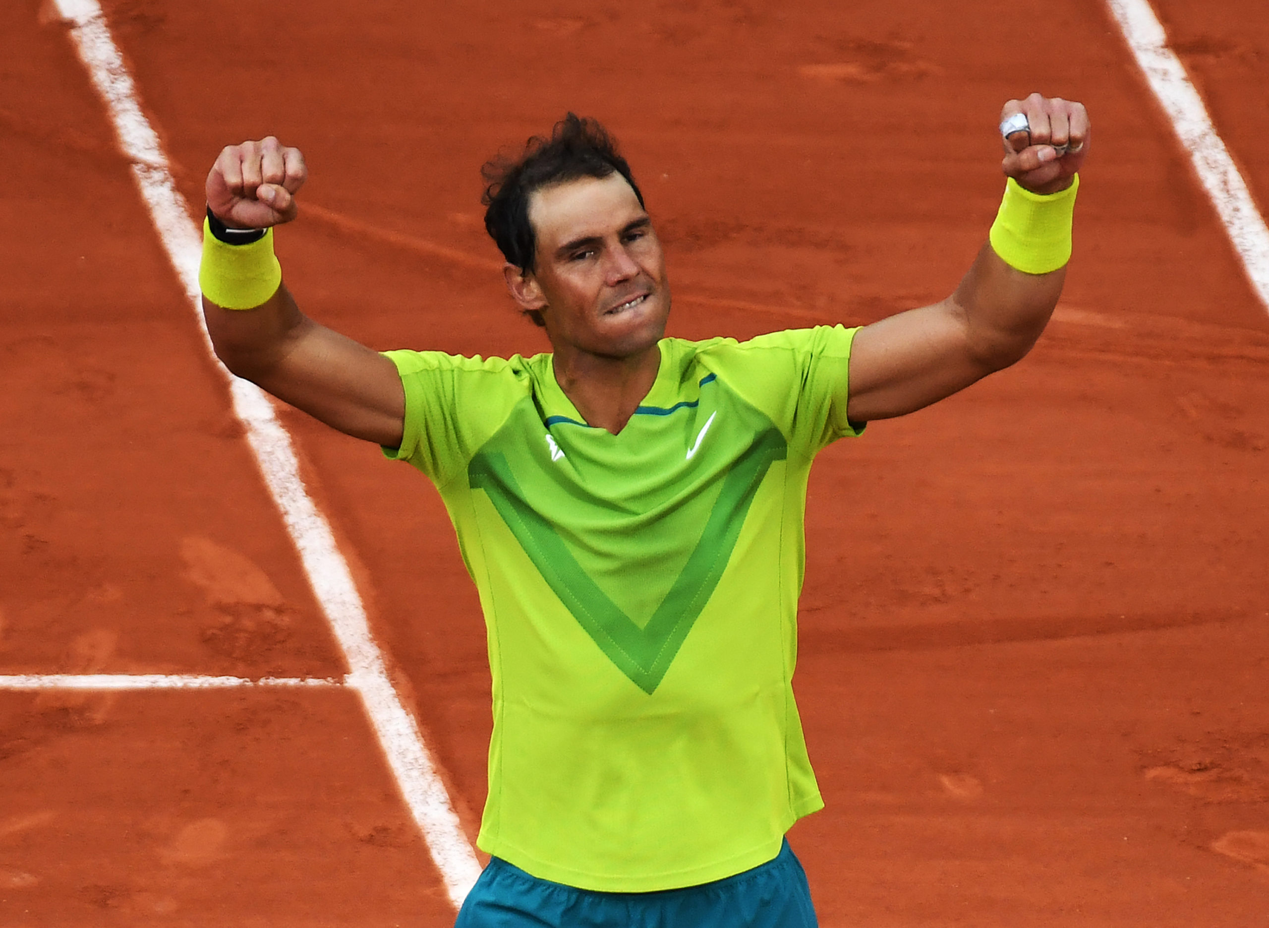 Main photo:- Rafa Nadal celebrates after his great escape in Paris – by Roger Parker International Sports Fotos Ltd