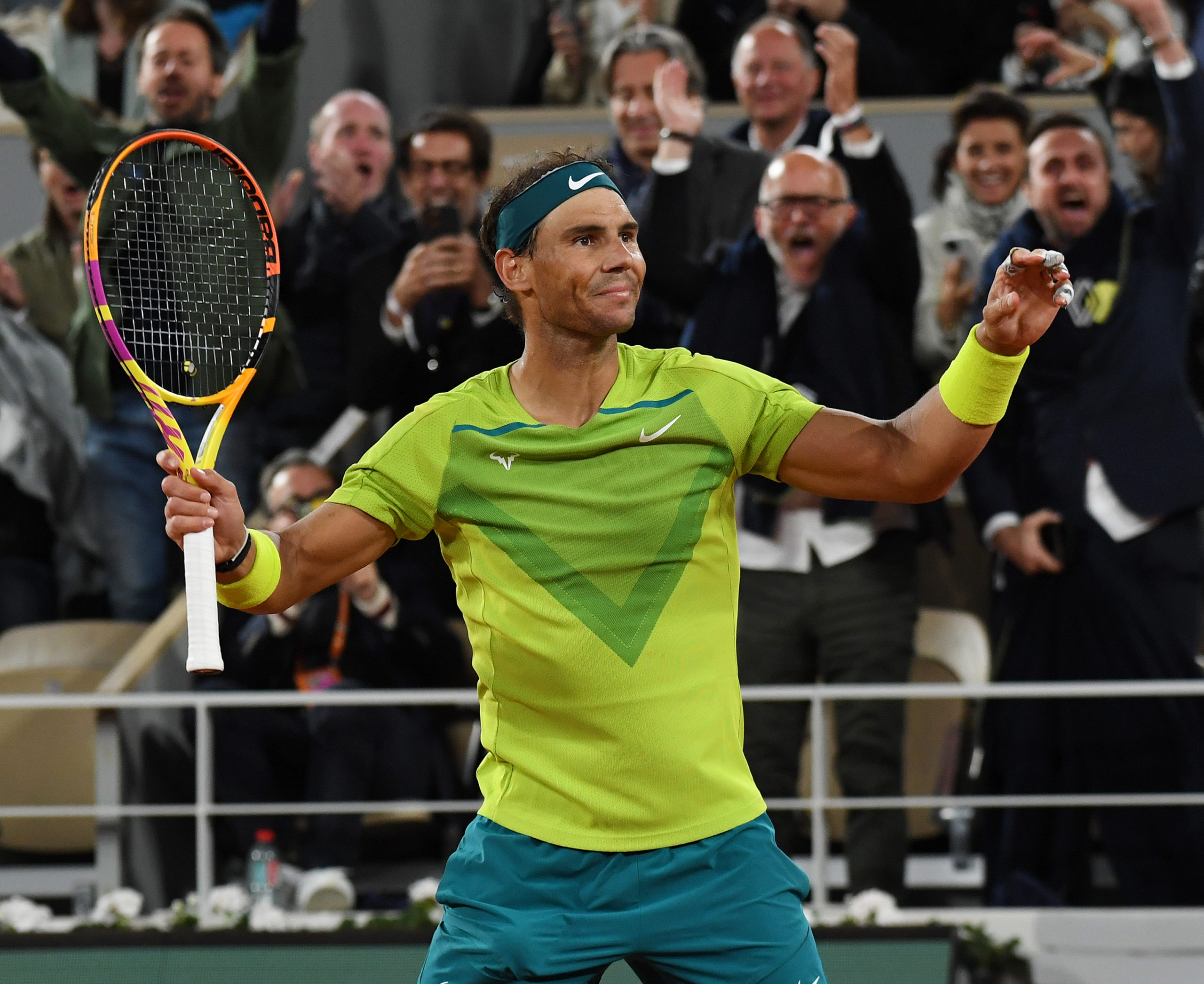 Roland Garros French Open Day 10 31/05/2022 Rafa Nadal (ESP) celebrates after beating Novak Djokovic (SRB)quarter final match Photo Roger Parker International Sports Fotos Ltd