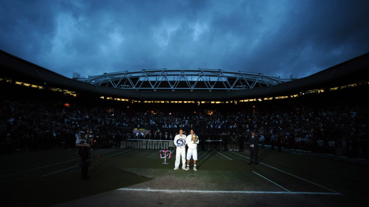 Main photo:- Rafael Nadal with Roger Federer and Trophy after he wins Men’s final in five sets in 2008 by Roger Parker International Sports Fotos Ltd