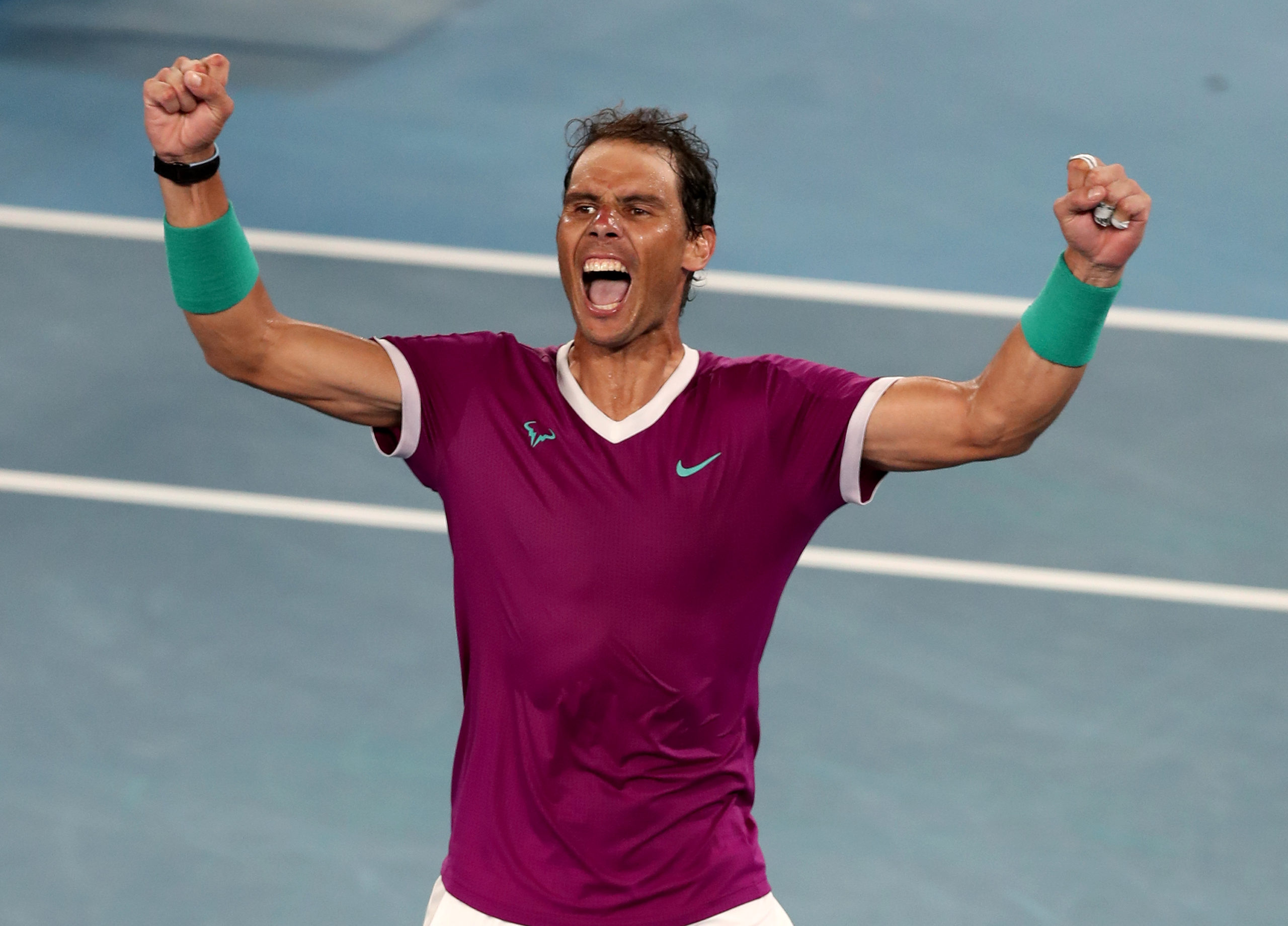 Rafael Nadal celebrates history by winning his 21st Grand Slam title. Australian Open Tennis 2022 Melbourne Park, Australia Day 14 Sunday 30 January 2022 PHOTO BY KARL WINTER