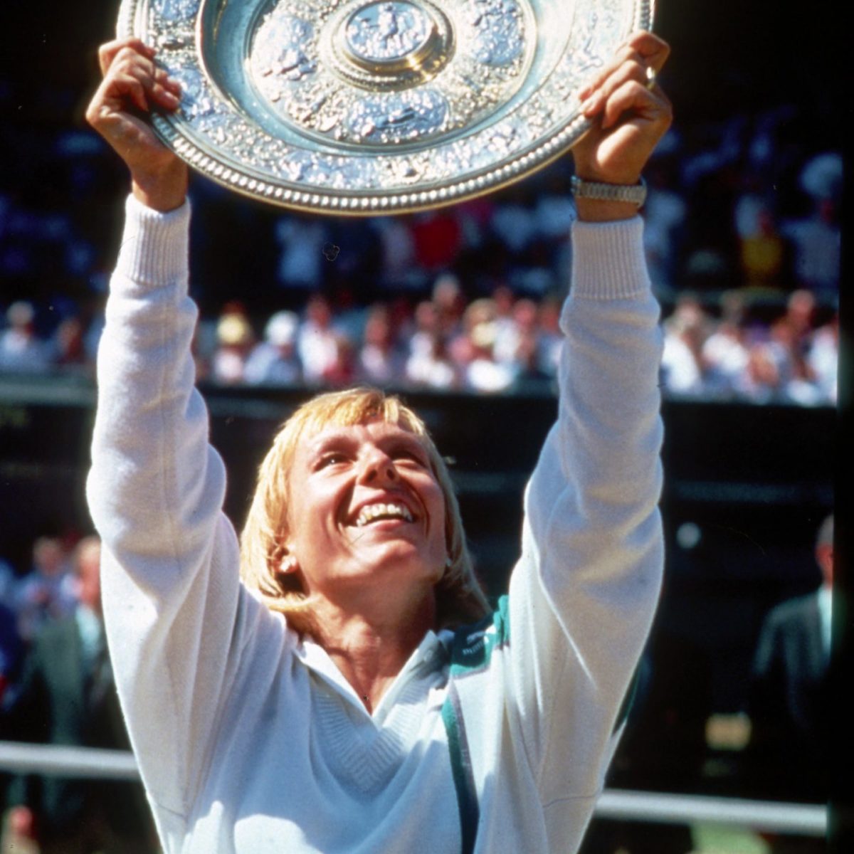 Main photo:- Martina Navratilova (USA) wins Wimbledon Championships Ladies Singles trophy 1987 by Roger Parker Fotosports International