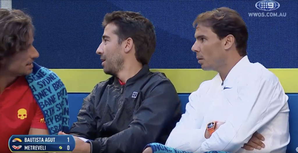 Perhaps something was said to Nadal and his opponent Niko Basilashvili in the warmup areas before they entered the court, as Nadal wore red and Basil white – not that we really needed any help to identify the World No.1.