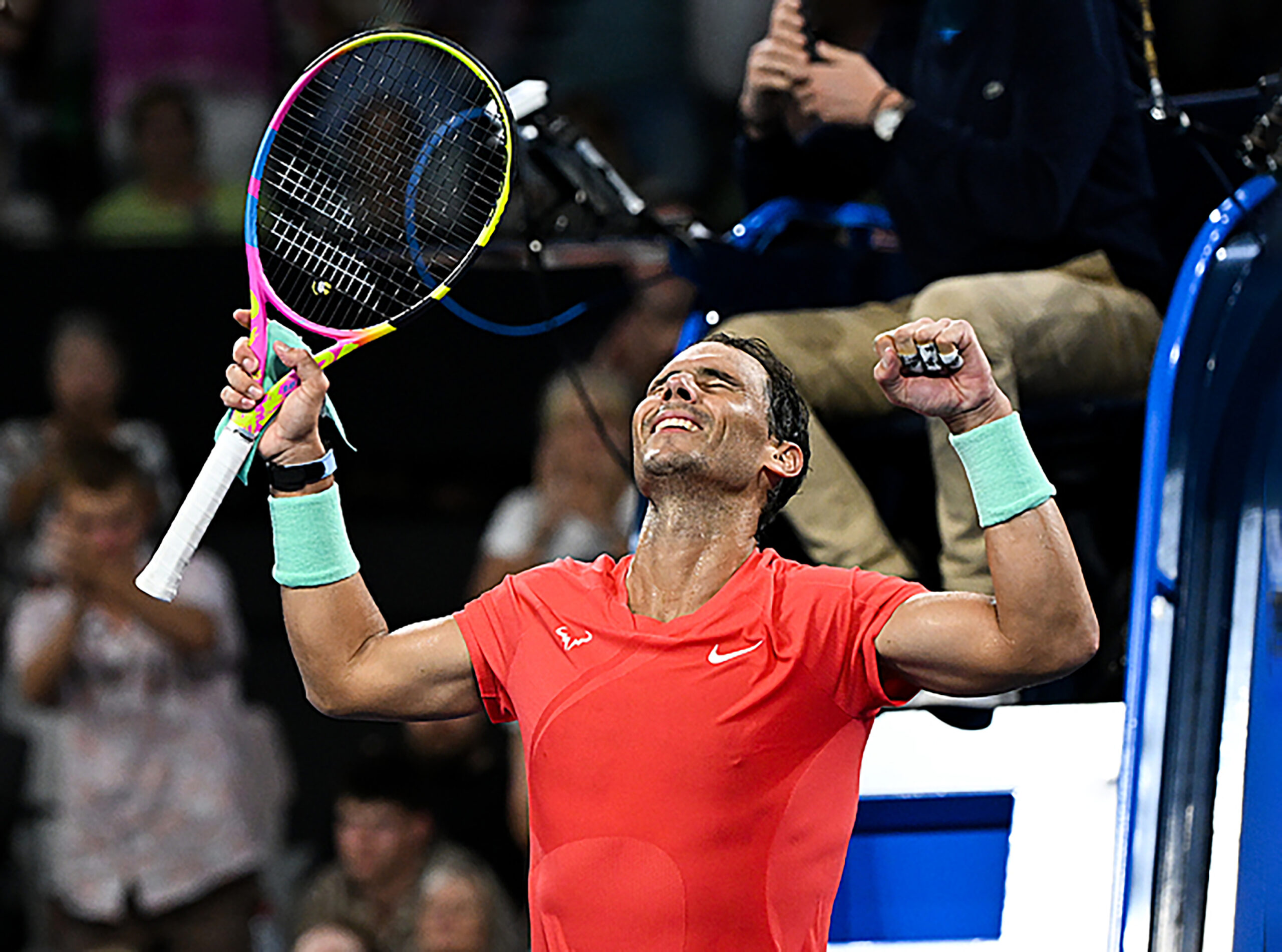 Main photo:- Rafa Nadal celebrates winning in Brisbane.