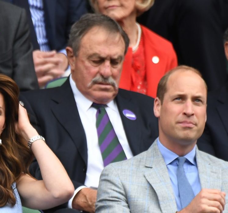 London England 14 July 2019 The Championships Wimbledon 2019 14072019 Duke and Duchess of Cambridge with explayers Rod Laver and John Newcombe behind them Photo Roger Parker International Sports Fotos Ltd/Alamy Live News