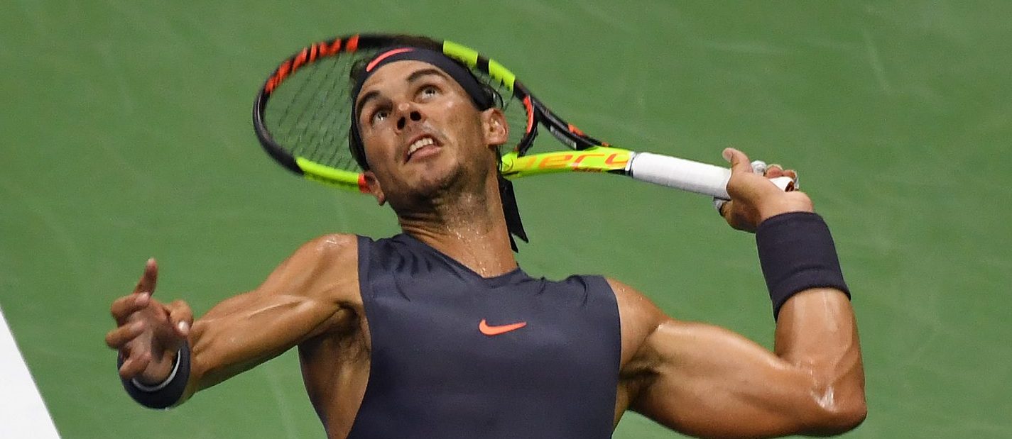 USTA Billie Jean King National Tennis Centre Flushing Meadows, New York 27/08/2018 Arthur Ashe Court Rafael Nadal (SPA) serves as beats Vasek Pospisil CAN) in straight sets Photo Roger Parker International Sports Fotos Ltd