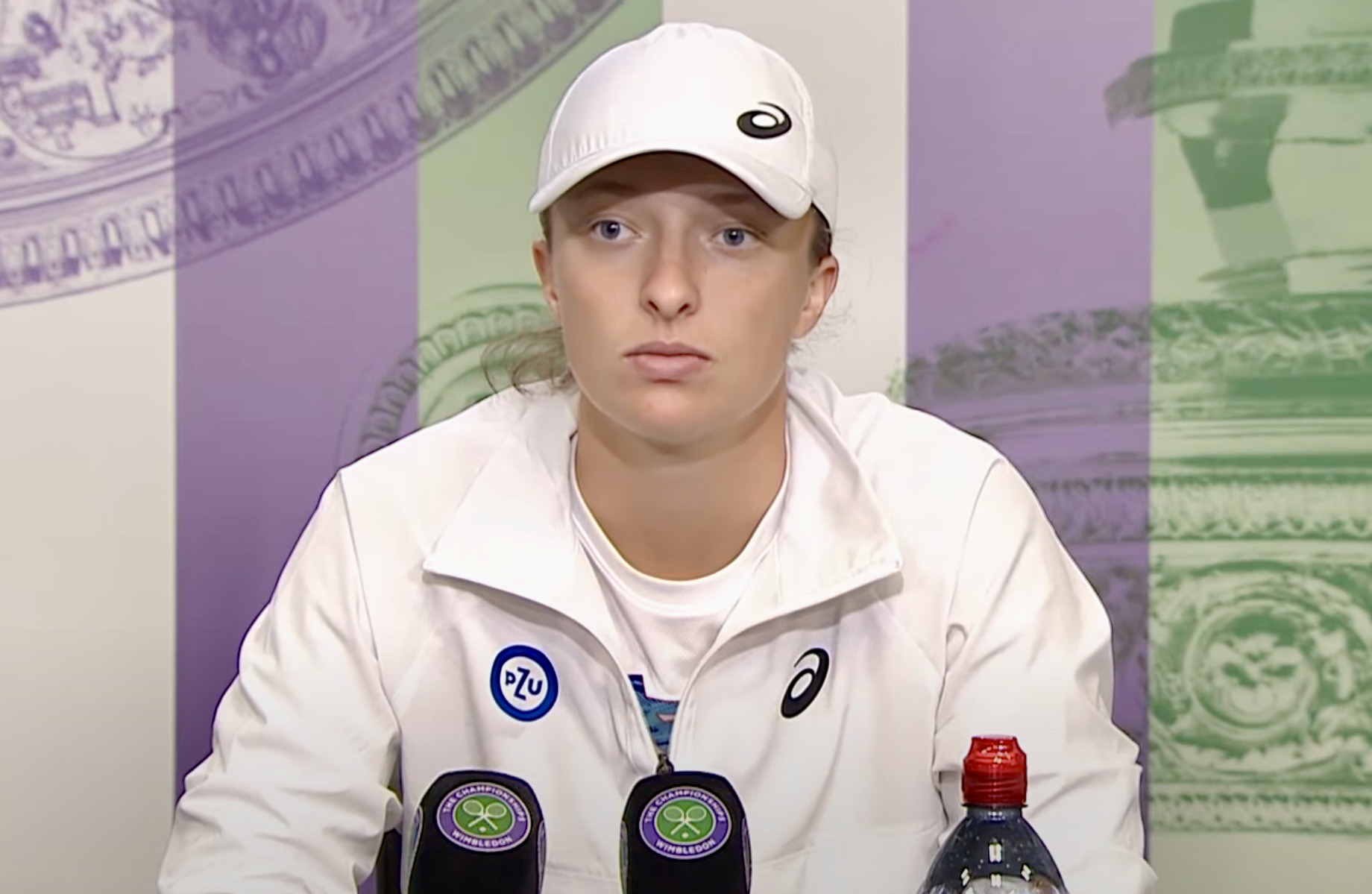Swiatek wore a pin with the colours of Ukraine on her hat, as she did in Paris last month.