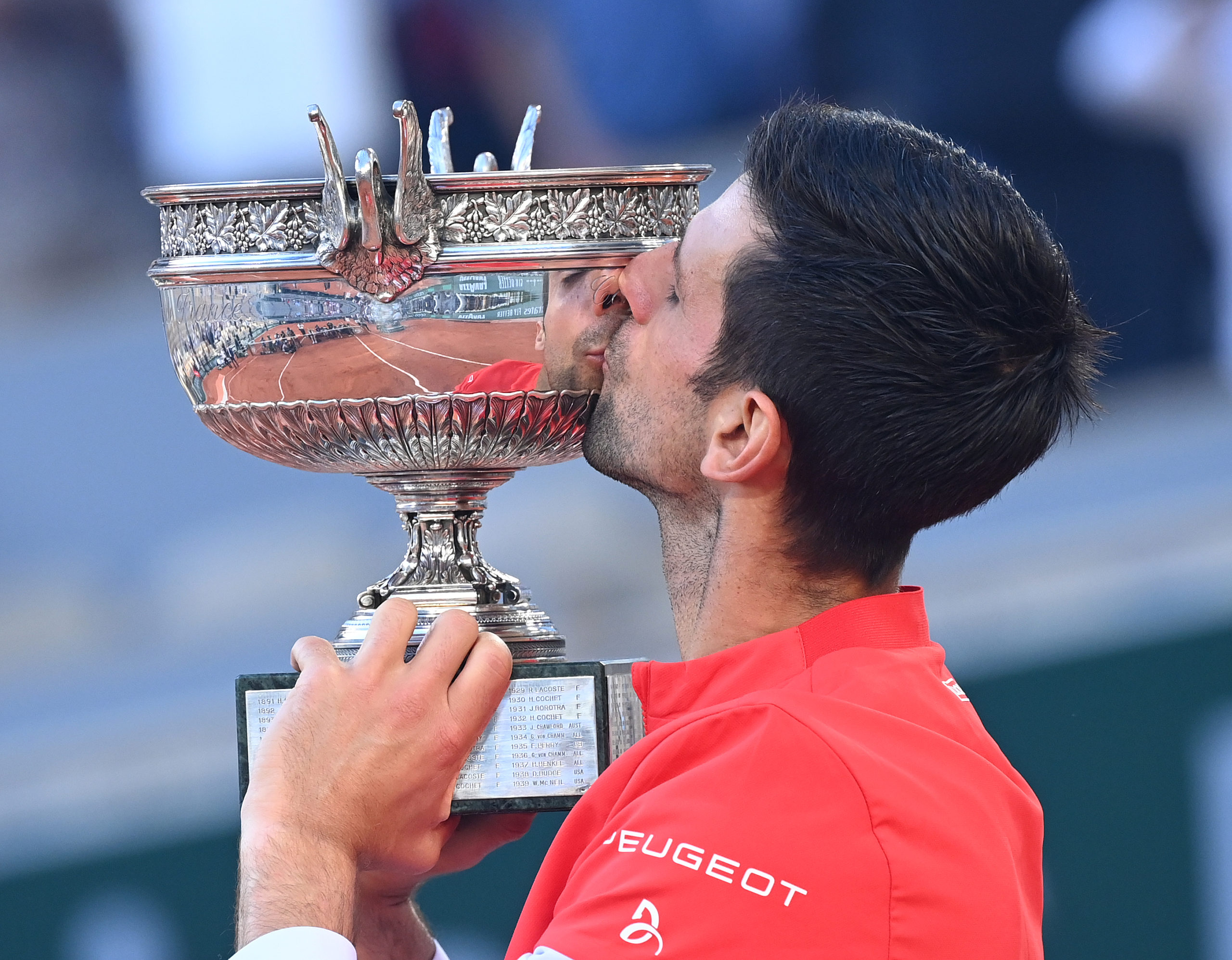 Paris, Roland Garros, French Open Day 15 13/06/2021 Novak Djokovic (SRB with trophy after he wins Mens singles final Roger Parker International Sports Fotos Ltd