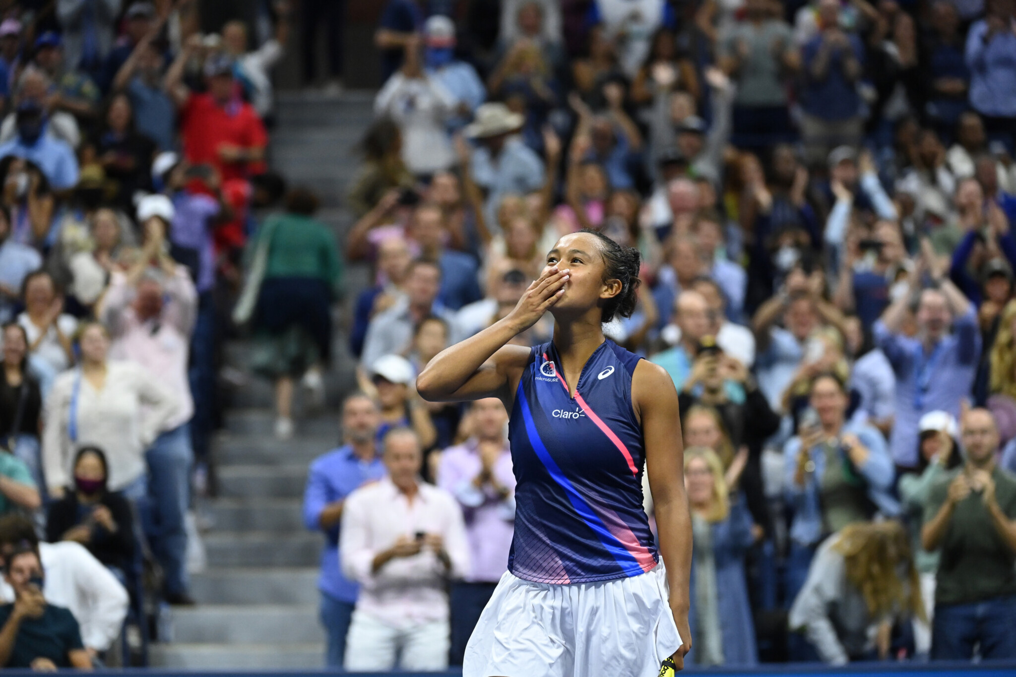 Leylah Fernandez celebrates after winning a Women's Singles match at the 2021 US Open, Friday, Sep. 3, 2021 in Flushing, NY. (Garrett Ellwood/USTA)