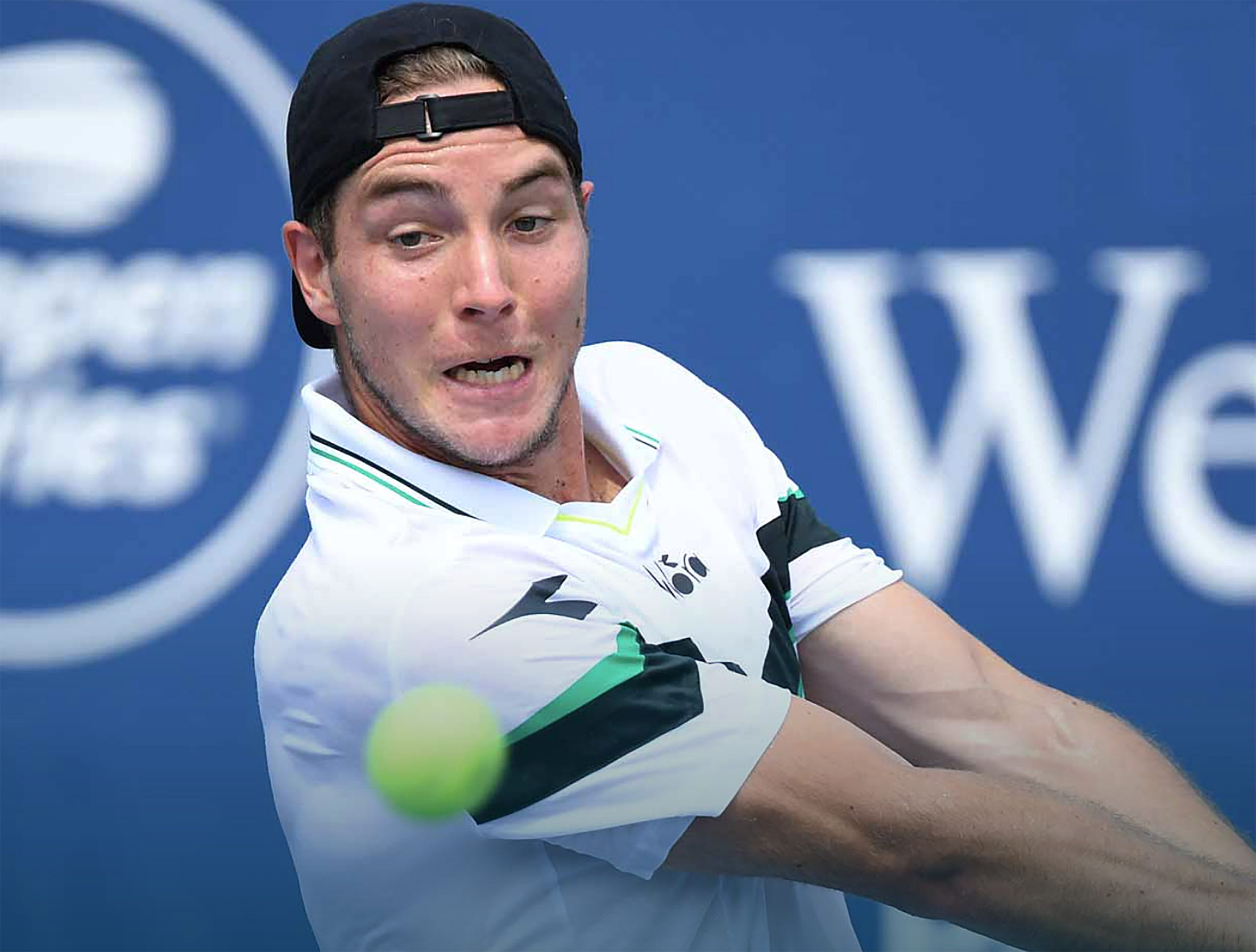 Steve Johnson also won a first-round upset, beating fifth-seeded Filip Krajinovic of Serbia 3-6, 6-4, 6-4.