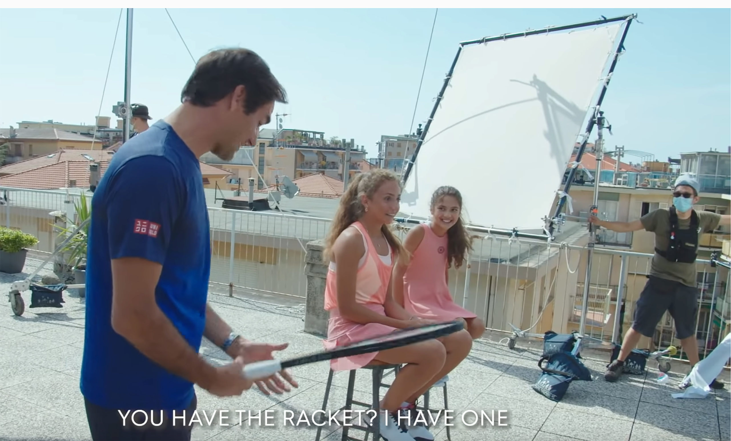 The video ad then shows Roger, Carola and Vittoria playing a spectacular and remarkable roof-top match, and the girls ended up sharing a memorable day with the Swiss master under the Ligurian sun!