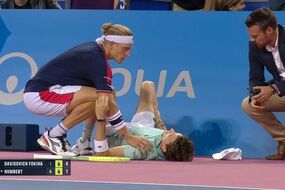 Humbert rolled onto the floor and stayed there as Davidovich Fokina rushed over to see if he was OK.