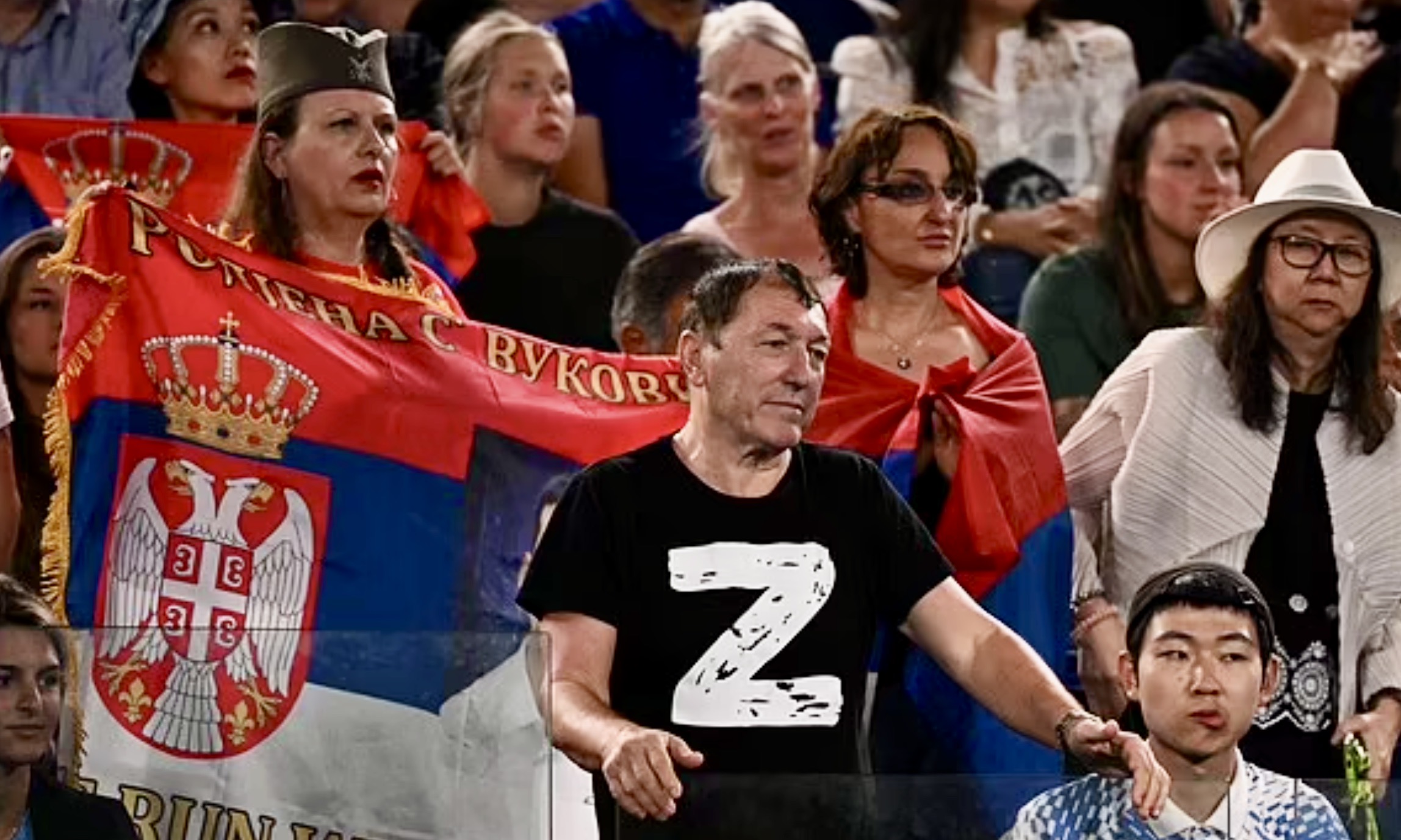 The paper later said that celebrating fans also unfurled a flag showing Russian dictator Vladimir Putin and shouted pro-Russian slogans on the steps of the Laver arena.