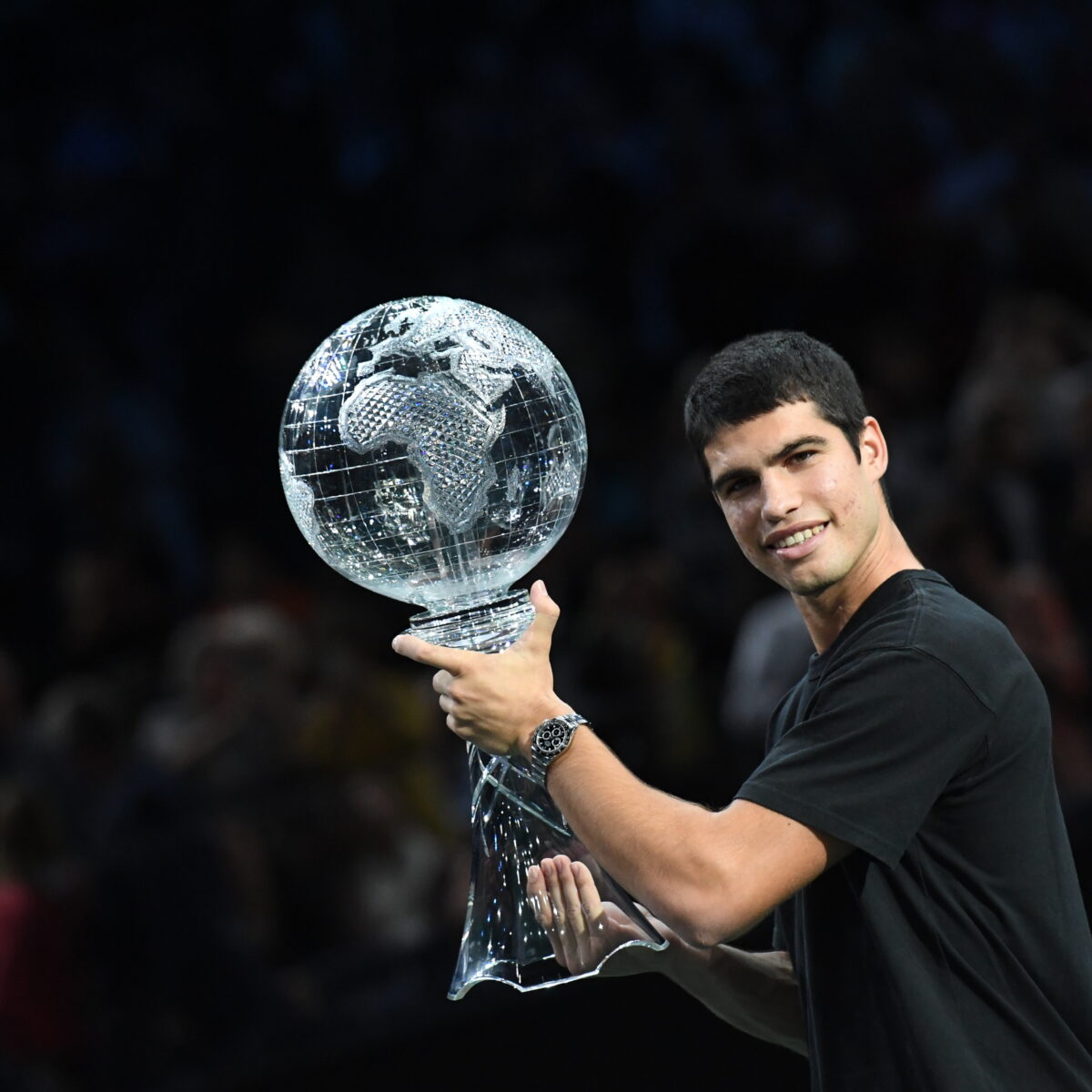 Main photo:- Carlos Alcaraz is presented with ATP World No, 1 trophy in Bercy – by Chryslene Caillaud