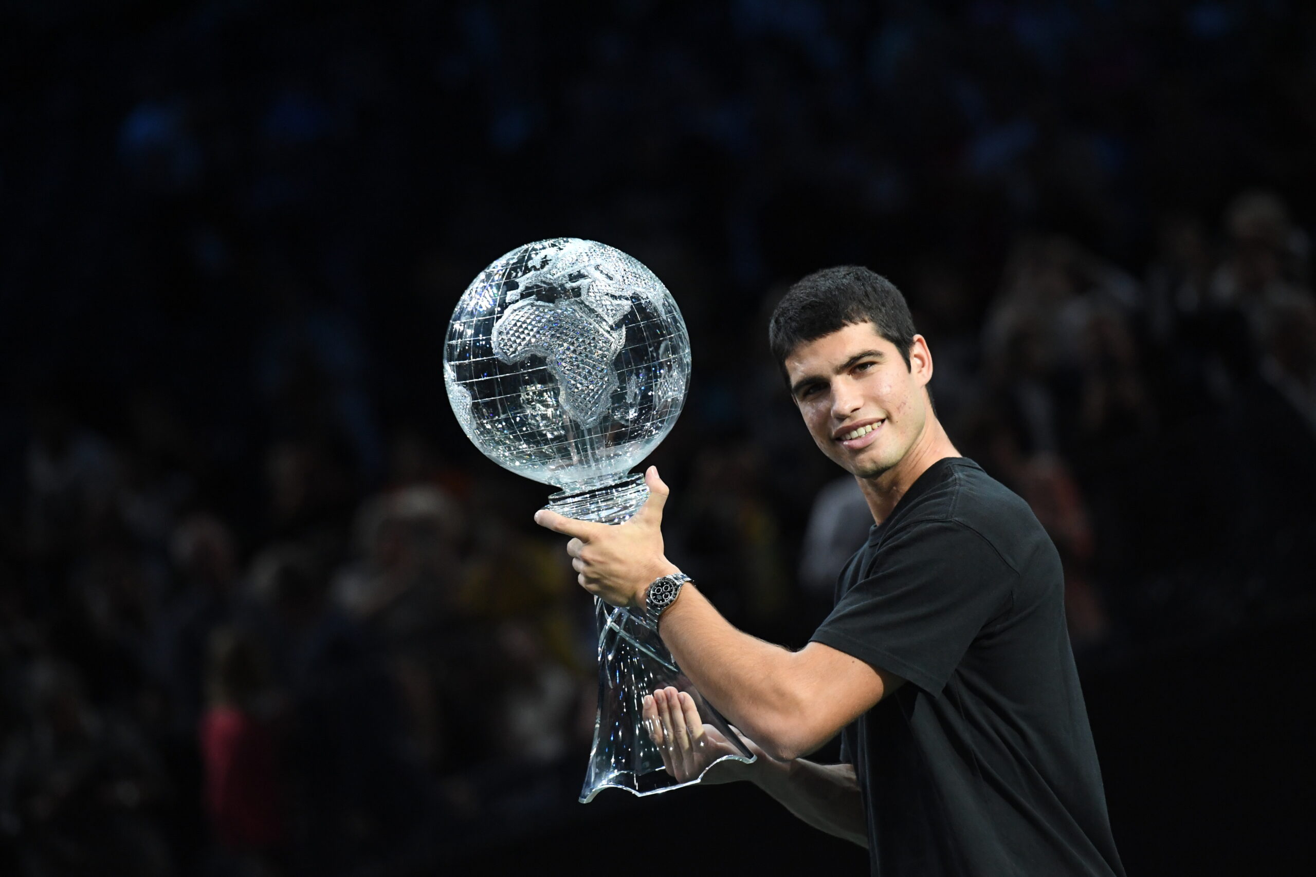 Main photo:- Carlos Alcaraz is presented with ATP World No, 1 trophy in Bercy – by Chryslene Caillaud