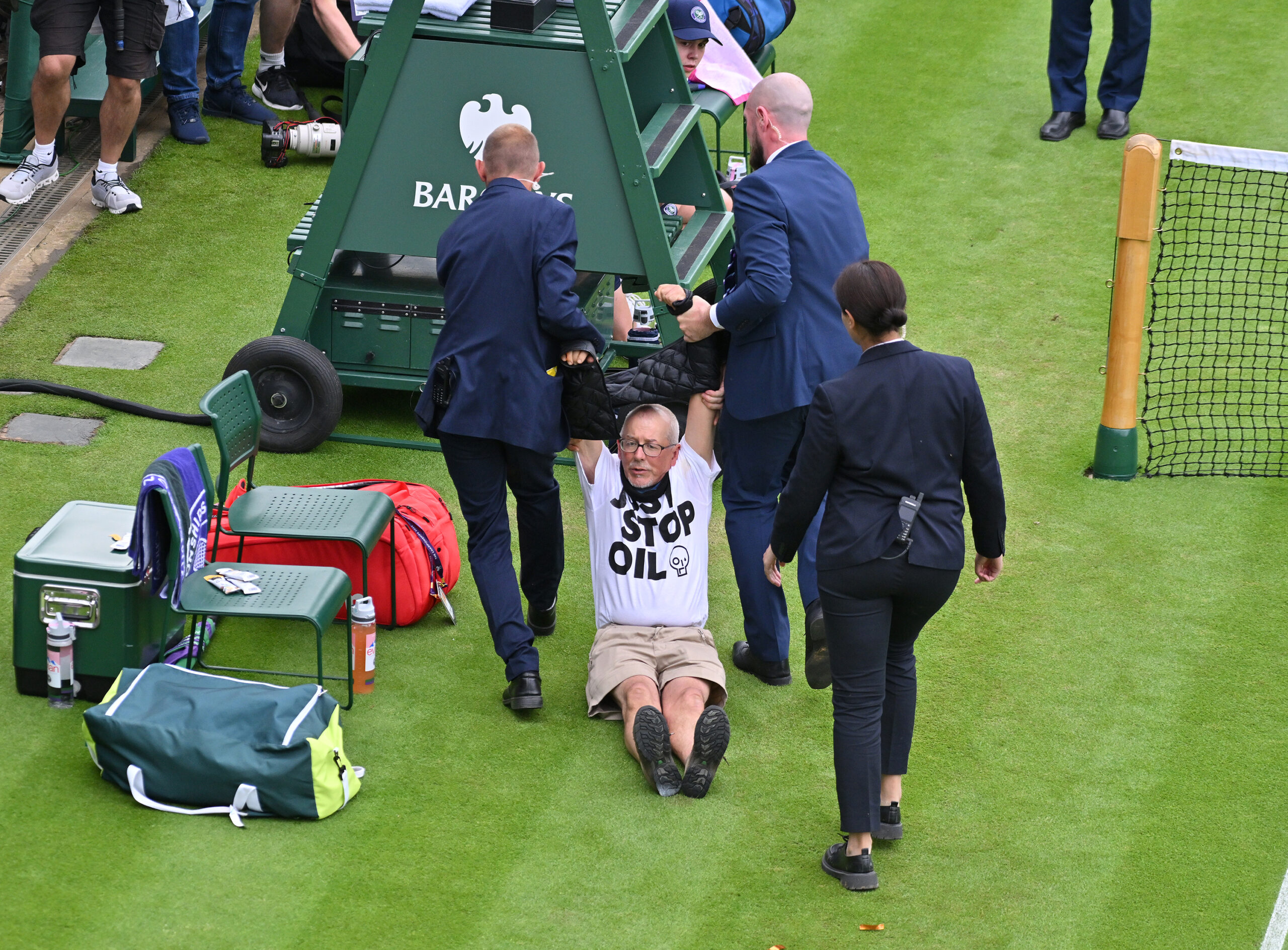 Wimbledon’s air-tight security measures proved useless on Wednesday as a pair of Just Stop Oil protestors managed to slip into the grounds and disrupt play on an outside court.