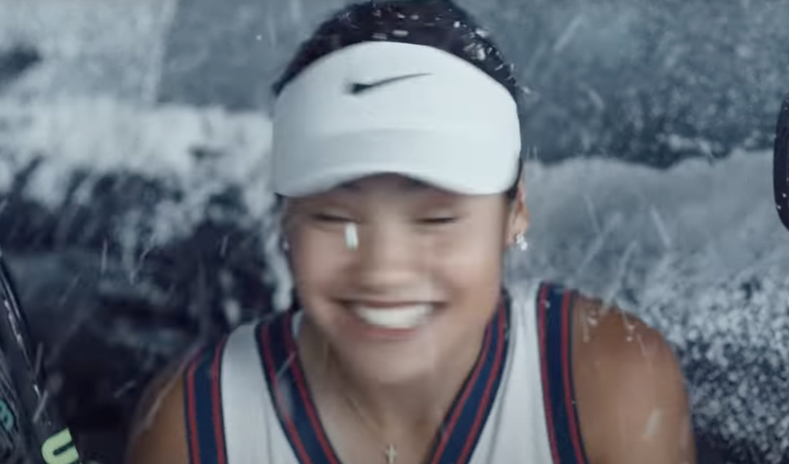 The commercial invites people to get out of their houses and enjoy the snow as Raducanu dodges snow balls and shouts “new balls, please!”, before serving and hitting British footballer Jack Grealish in the back.